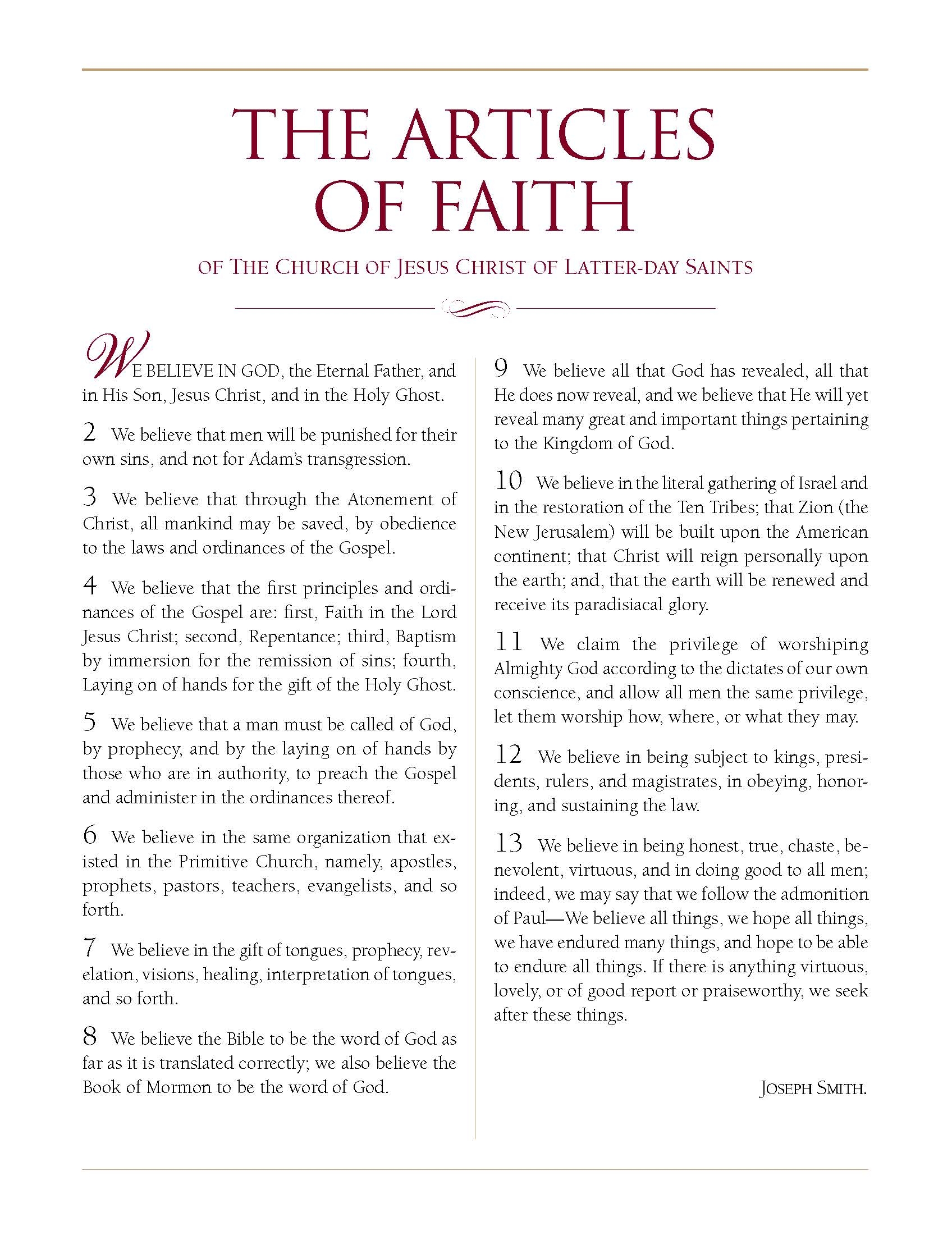 13 Articles Of Faith Lds Printable