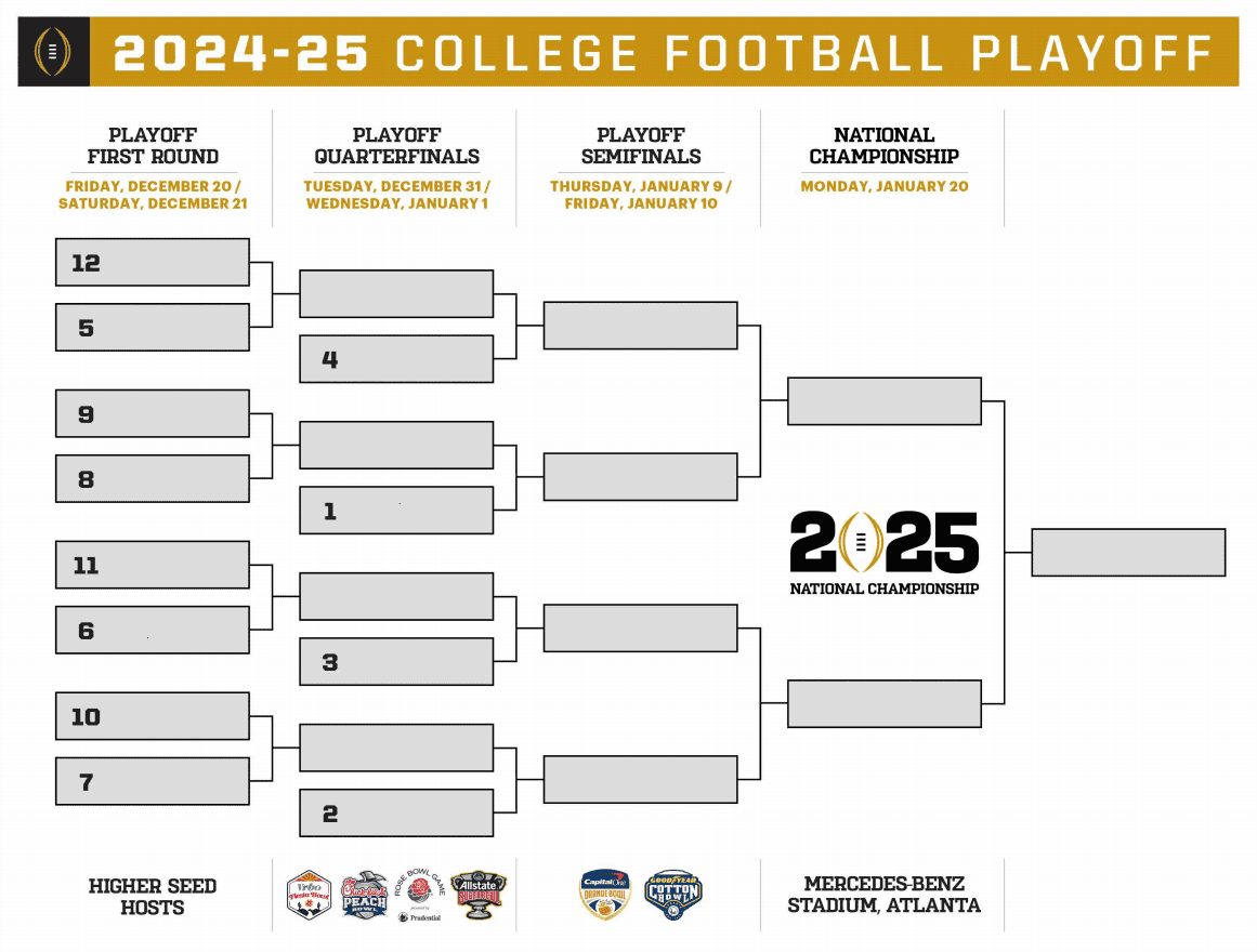 2024 25 College Football Playoff Printable Bracket Sports Gambling Podcast