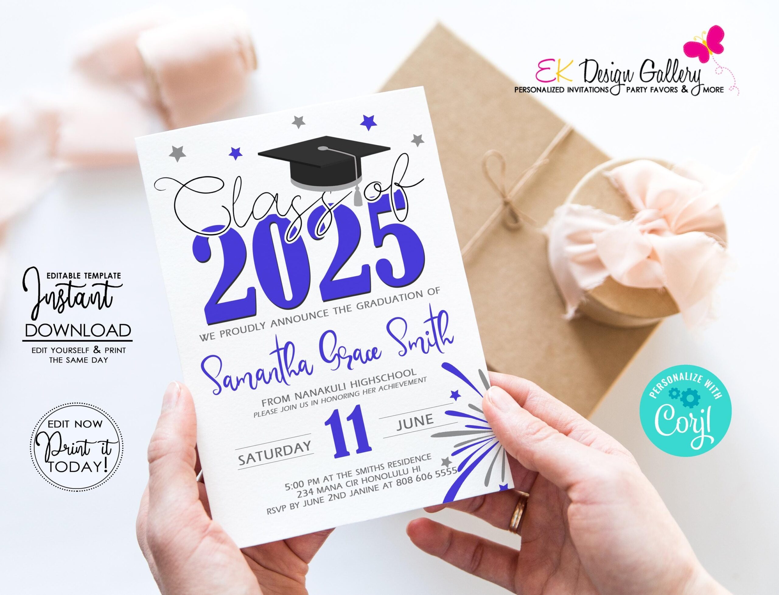 INSTANT DOWNLOAD Graduation 2025 Invitation Blue Silver Invite Graduation Party Invite Class Of 2025 Celebration Corjl EDITABLE Template Etsy