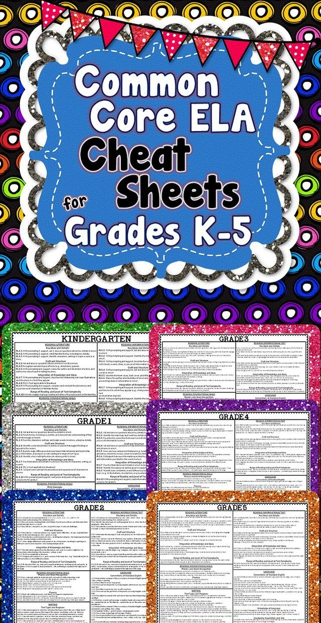 Common Core ELA Cheat Sheets Common Core Galore And More