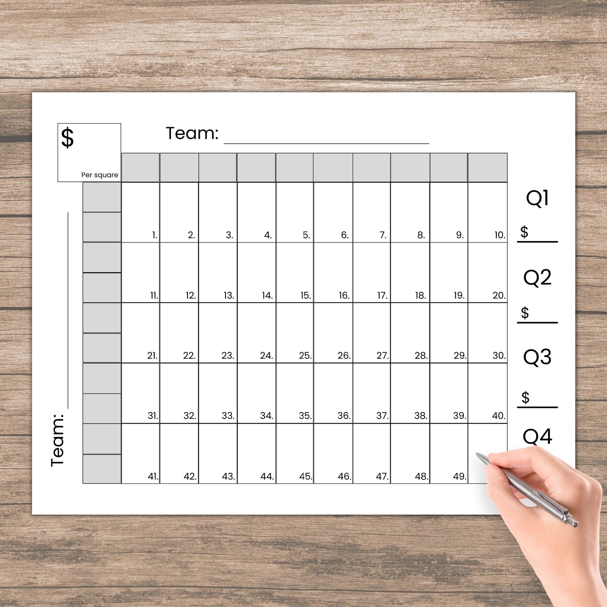 50 Thanksgiving Football Squares Game Printable Instant Download