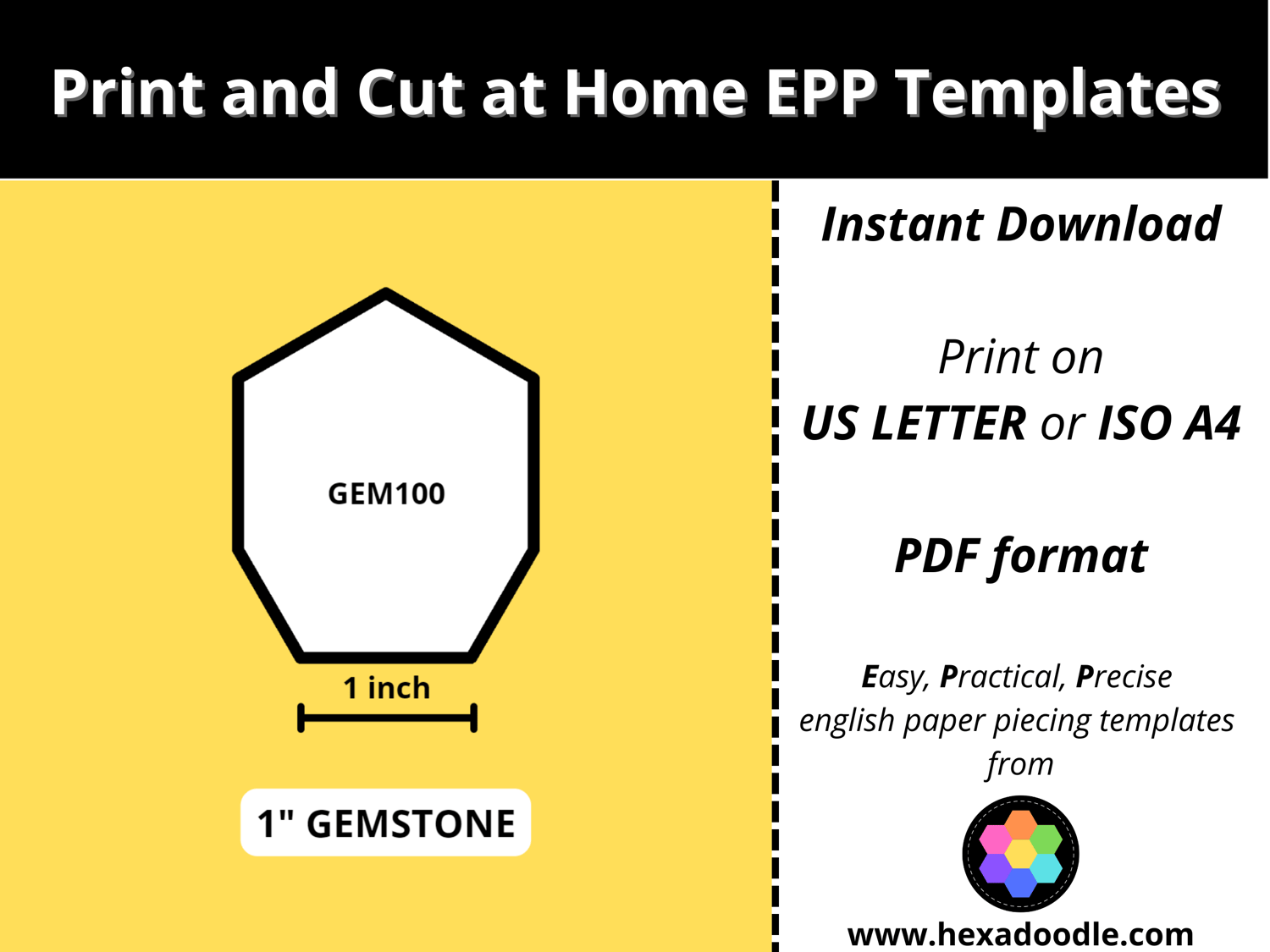 FHHEX100 FLAT HALF HEXAGON EPP Print And Cut At Home Templates 1 Inch Sides For Printing And Cutting Out At Home 35 Flat Half Hexagons Per Page