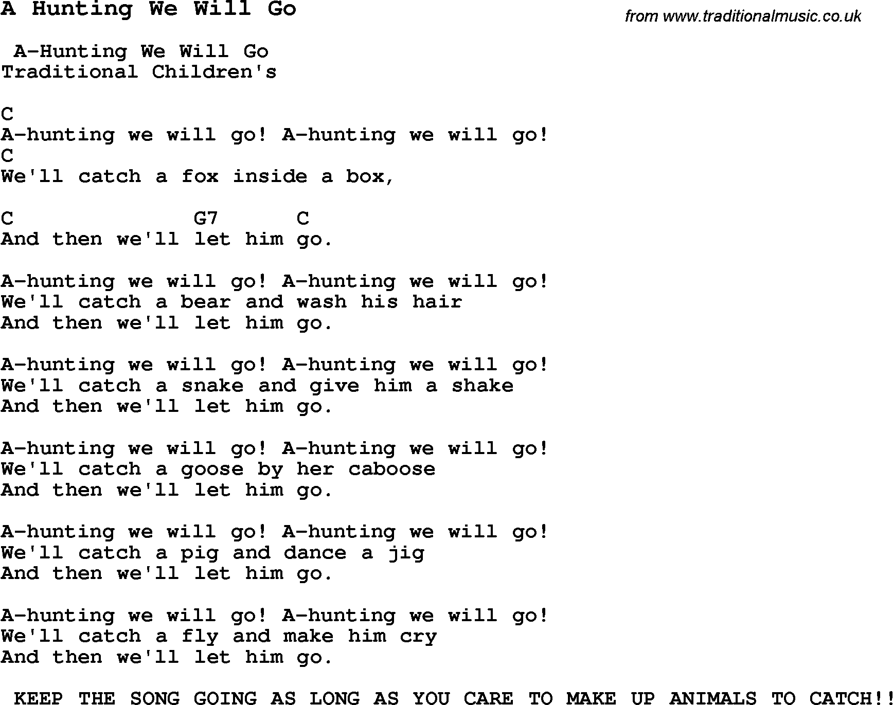 Summer Camp Song A Hunting We Will Go With Lyrics And Chords For Ukulele Guitar Banjo Etc