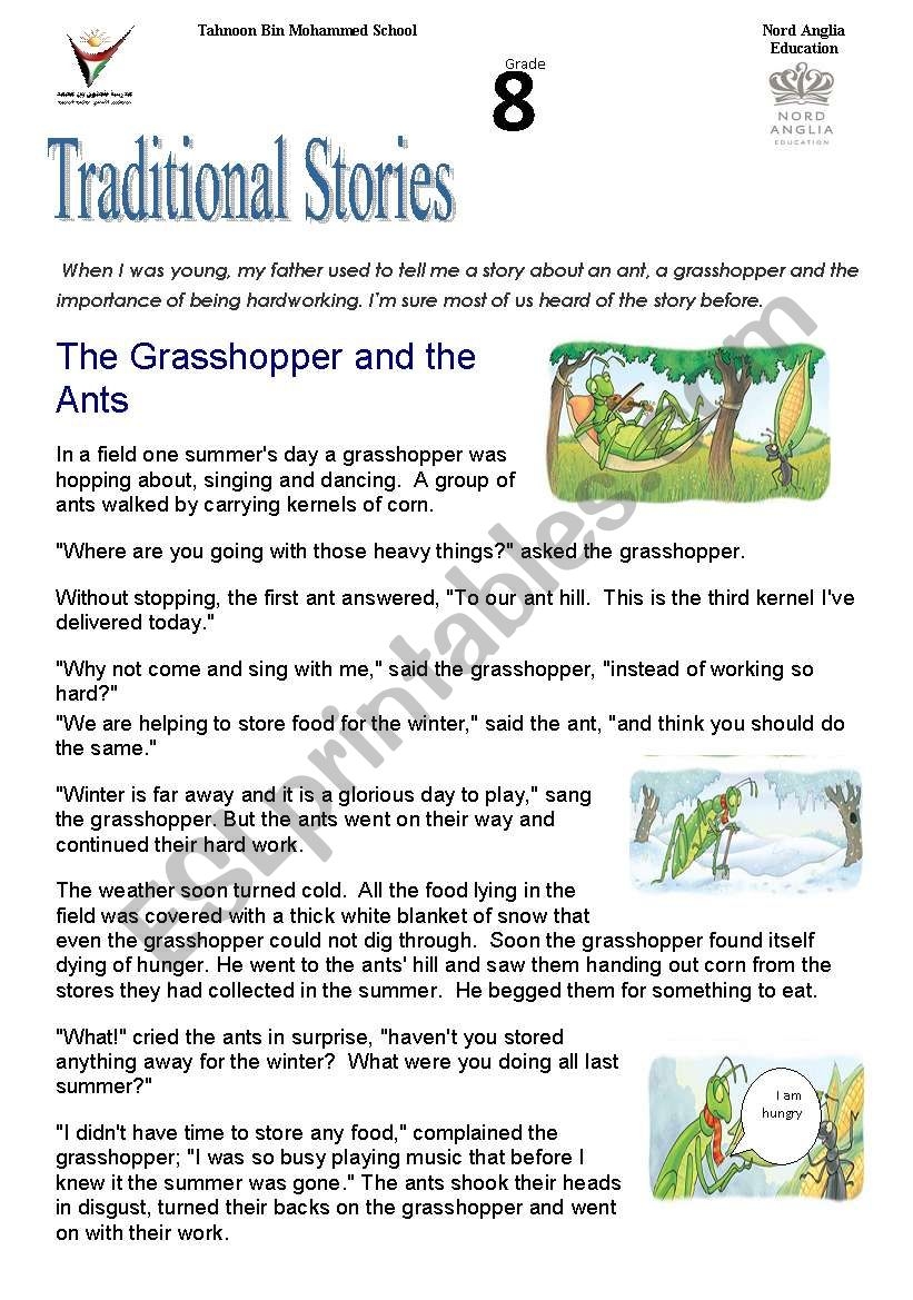 Tradidional Stories the Grasshopper And The Ant ESL Worksheet By Hanen