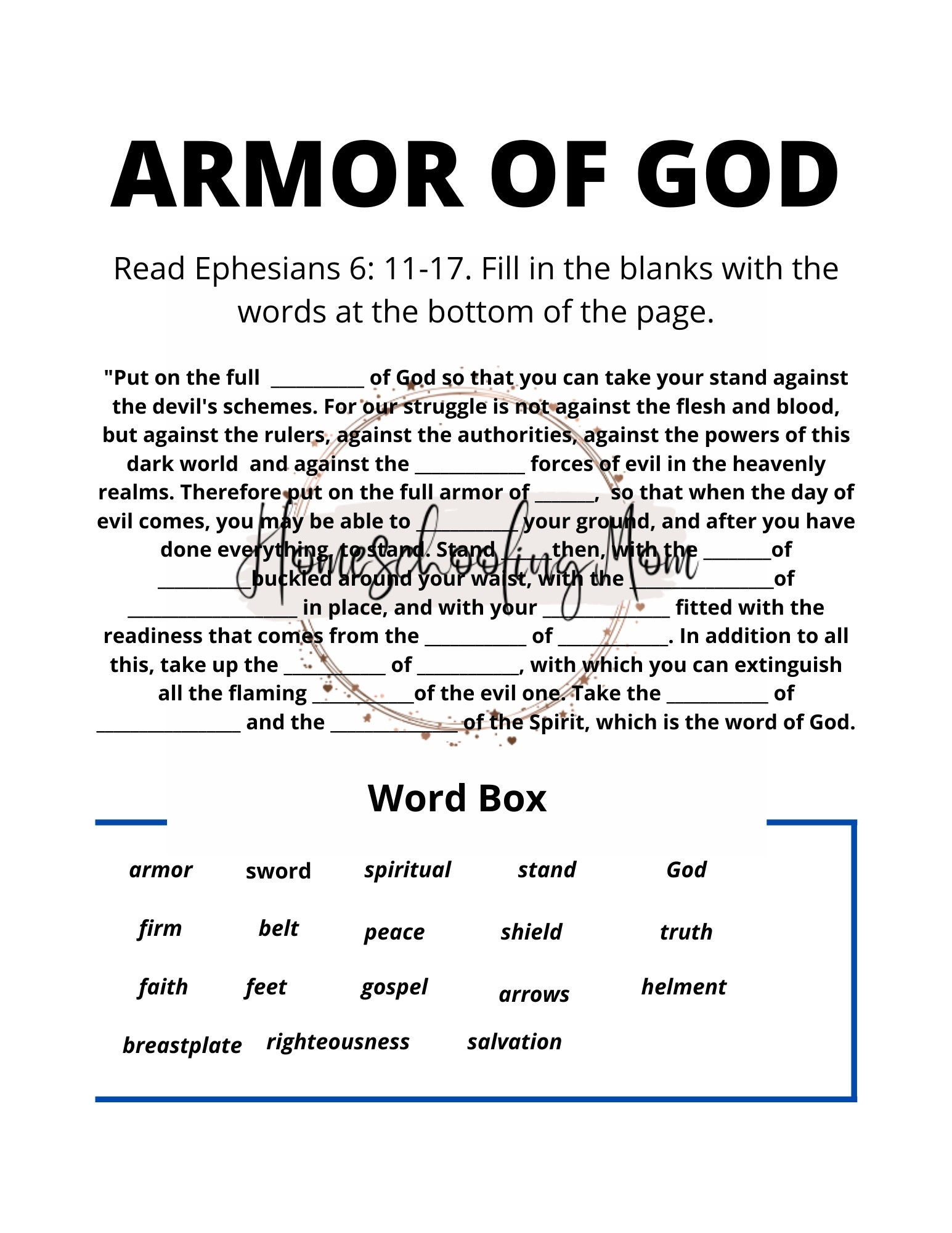Armor Of God Worksheet With Answer Key Etsy Denmark