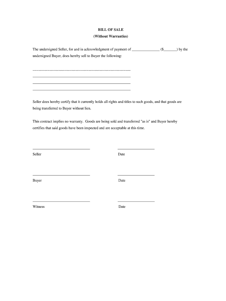 Free As Is No Warranty Bill Of Sale Template PDF Word