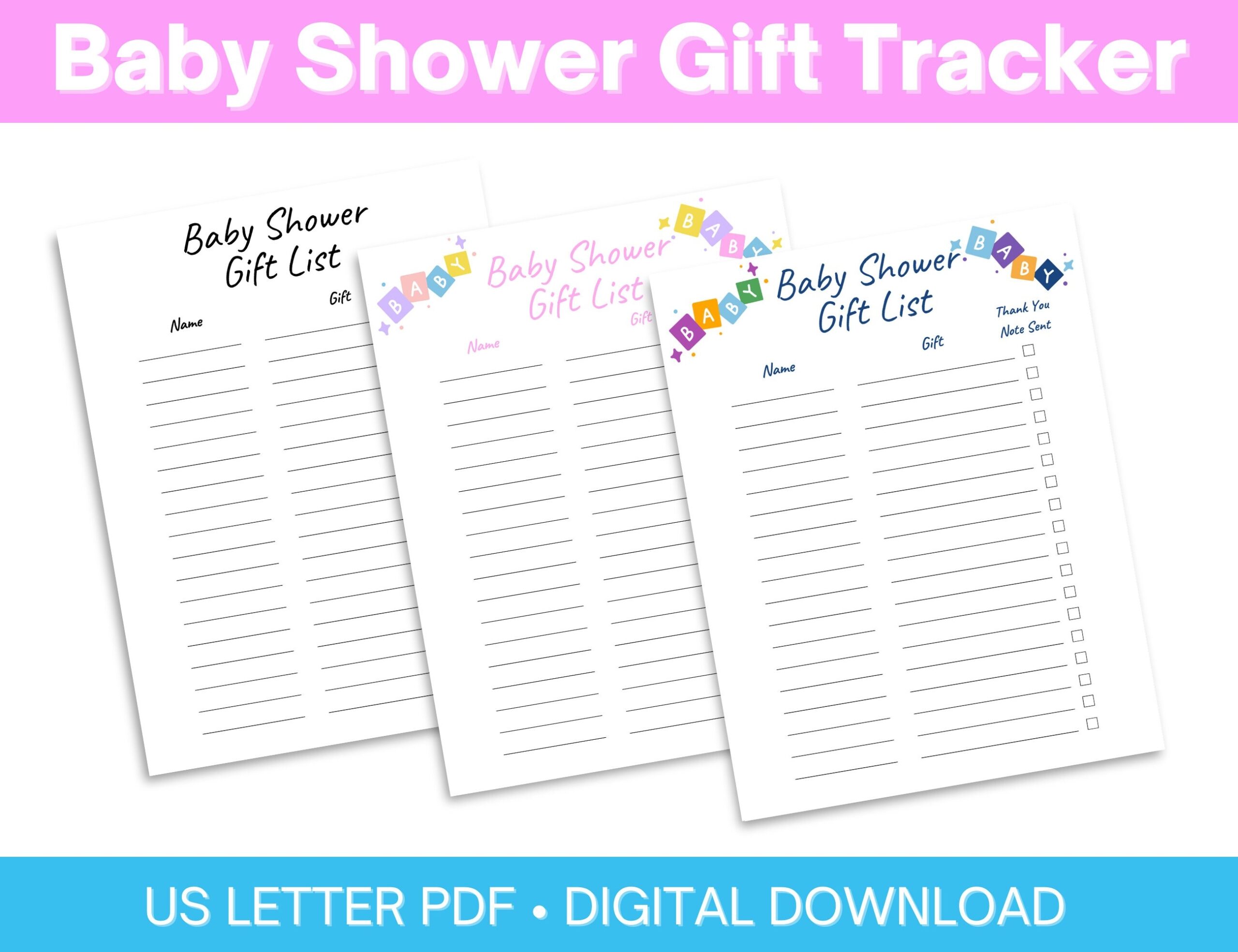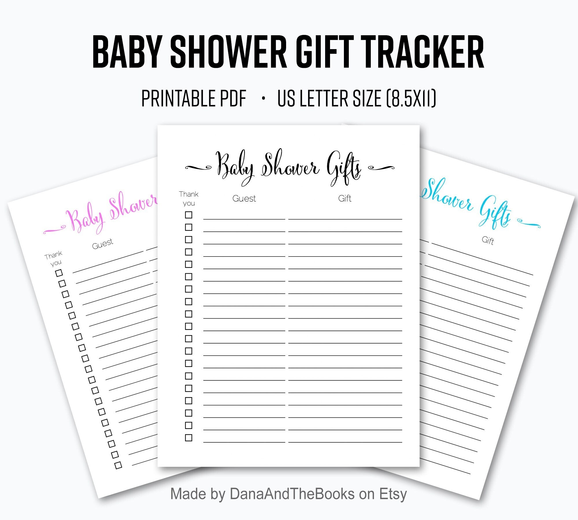 Baby Shower Gift List Printable With Thank You Note Tracker Etsy