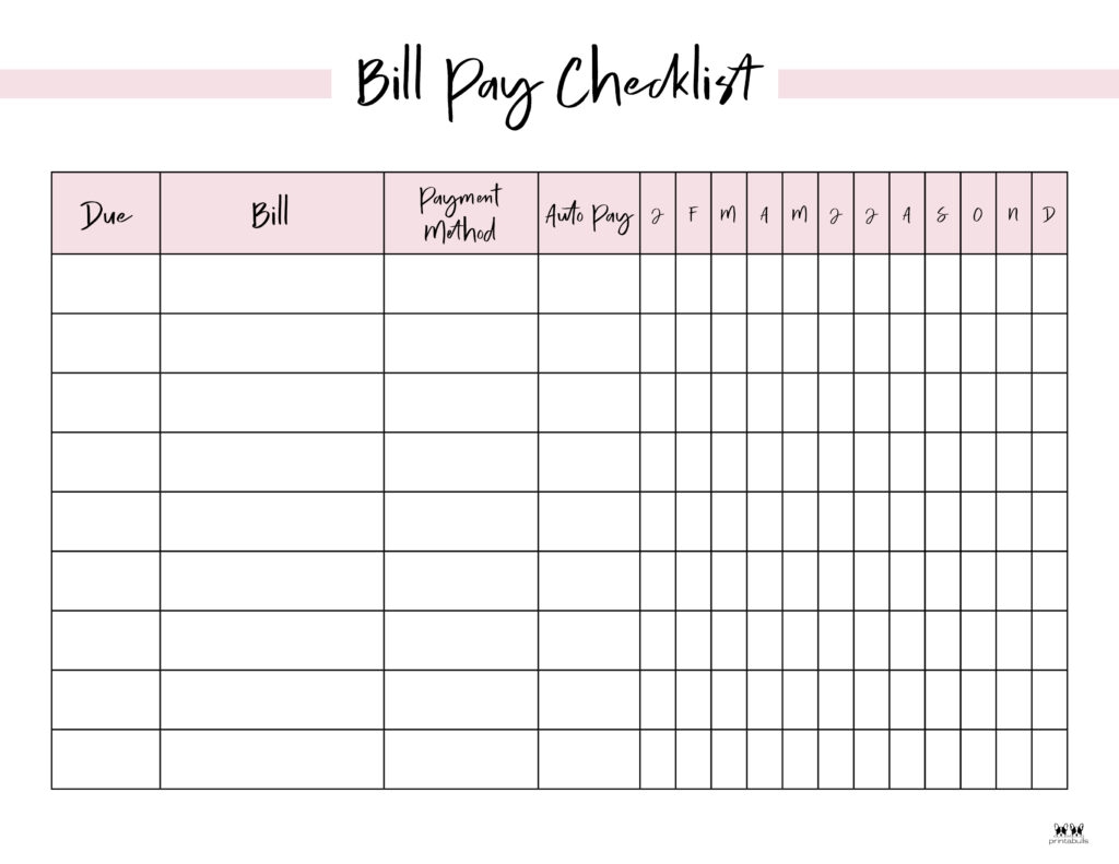Free Printable Bill Pay Checklist World Of Printables
