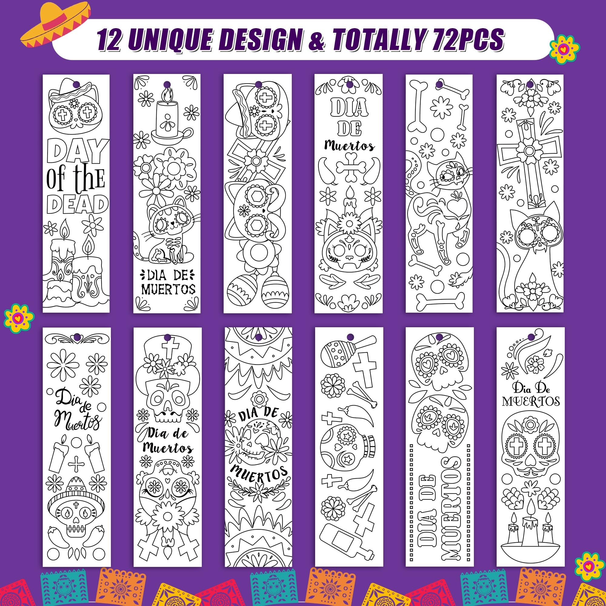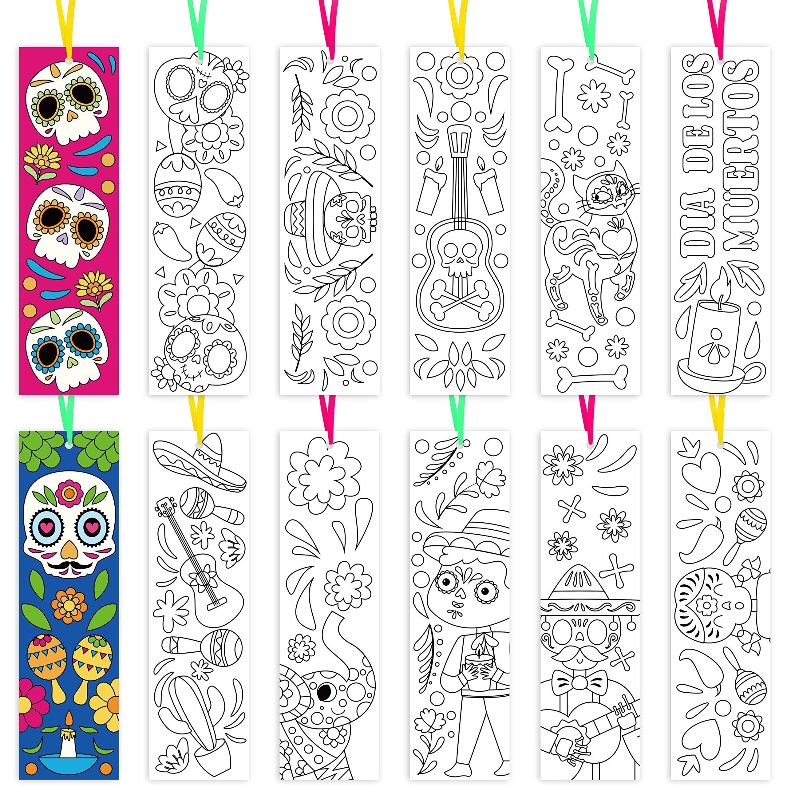 Haooryx 75Pcs Day Of The Dead Color Your Own Bookmarks Kids DIY Coloring Blank Bookmarks Mexican