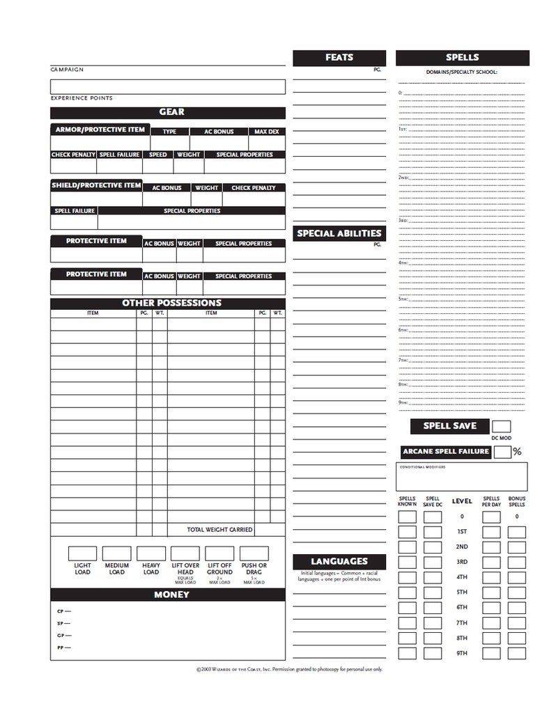 D&D 3.5 Printable Character Sheet