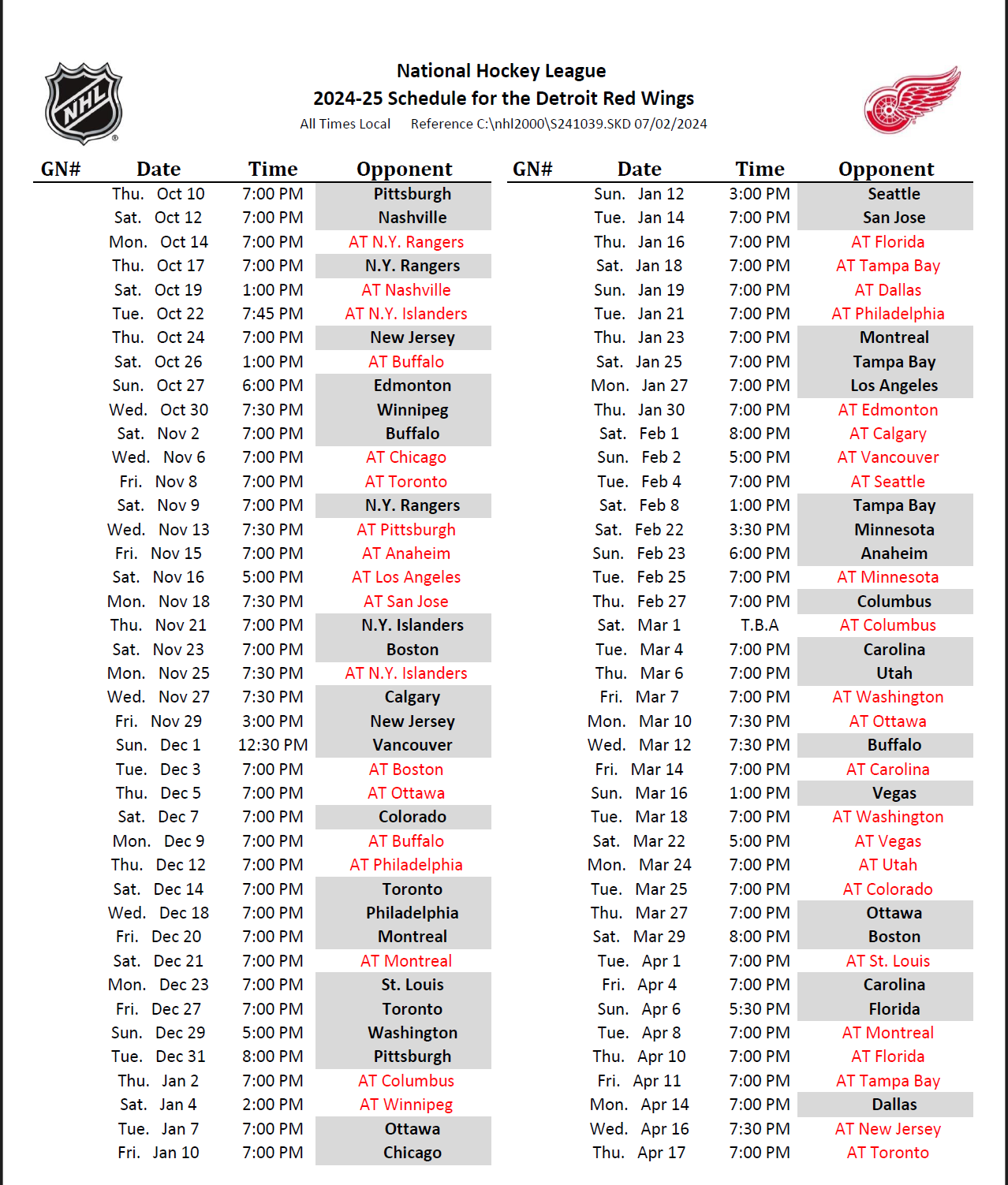 NHL Releases 2024 2025 Season Schedule Here s The Red Wings Sked The Malik Report