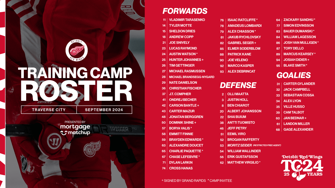 Red Wings Release 2024 Training Camp Roster And Schedule Detroit Red Wings