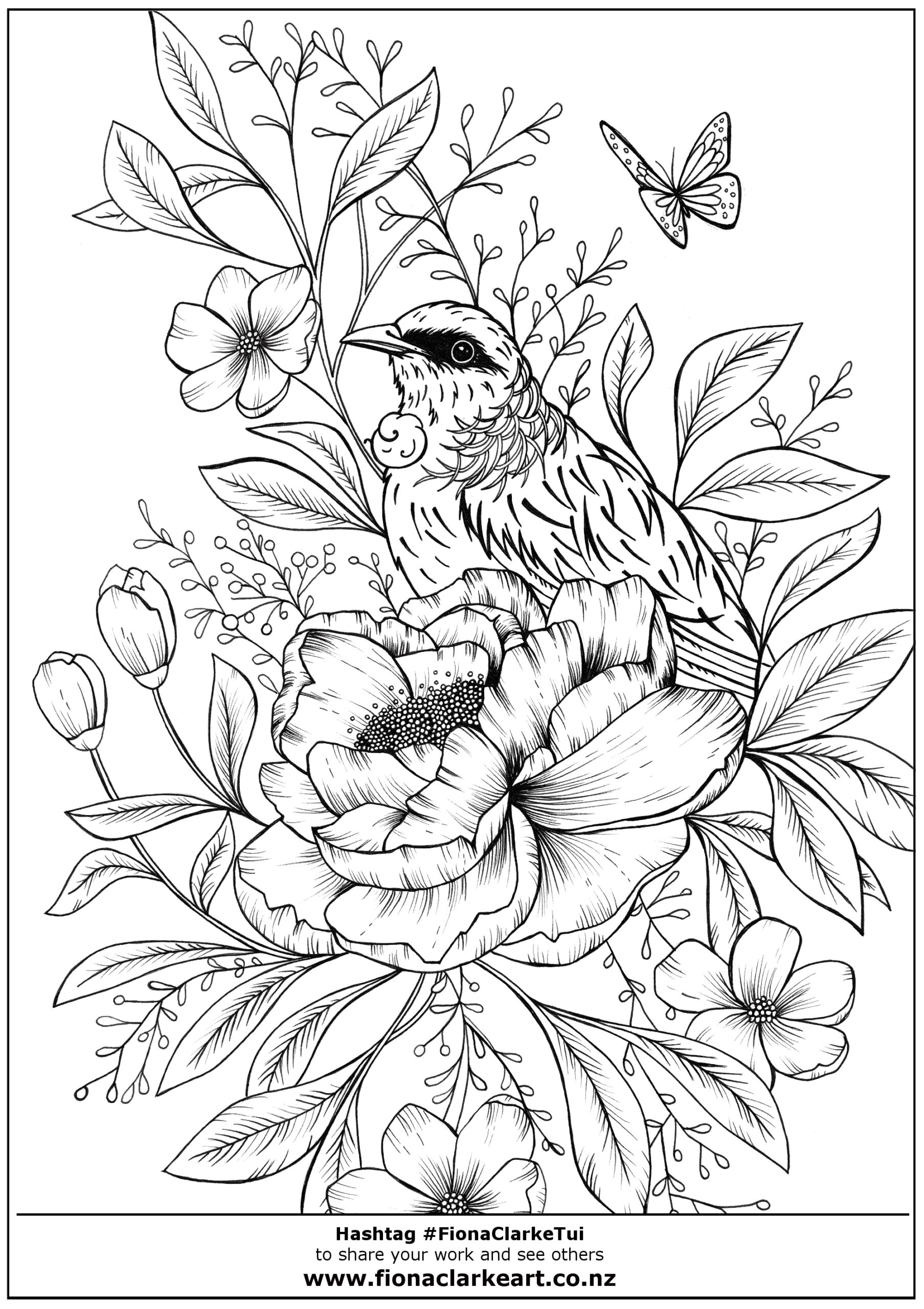 Free Tui Bird Colouring Page Colouring FionaClarkeART co nz