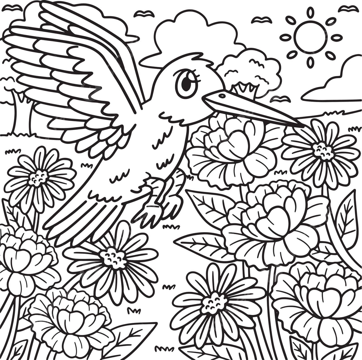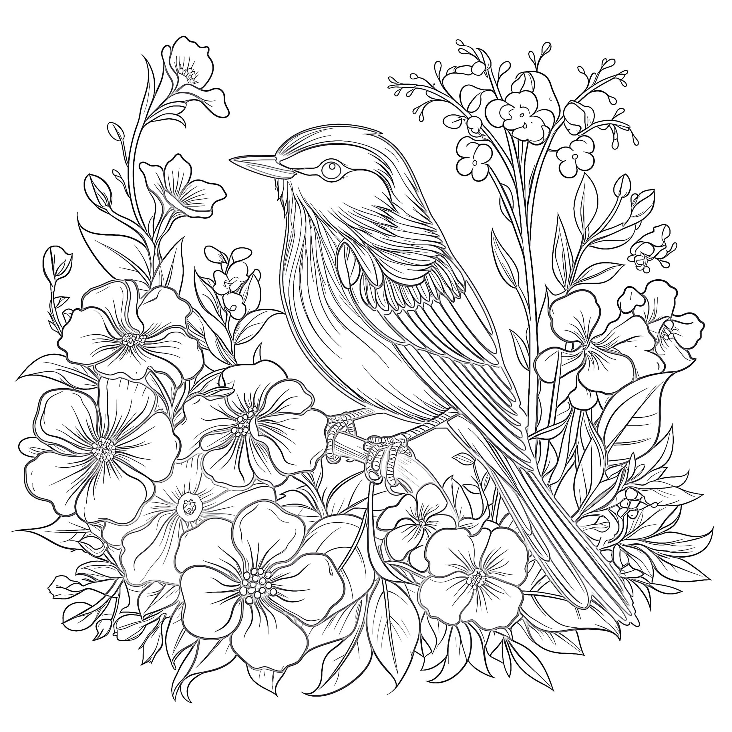 Bird And Flower Coloring Page Coloring Pages Mimi Panda