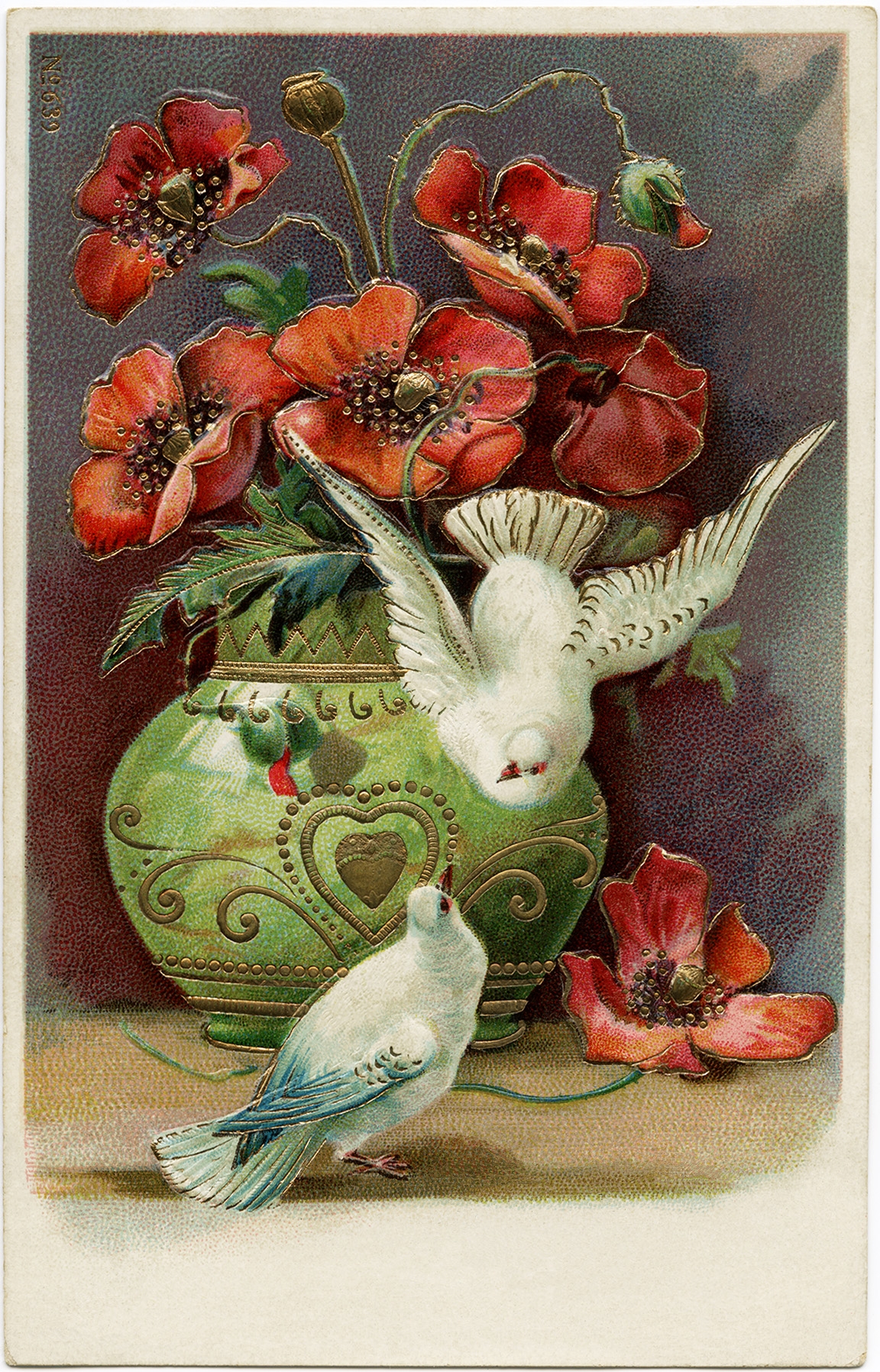 Poppies Birds And Best Wishes Free Vintage Postcard Image The Old Design Shop