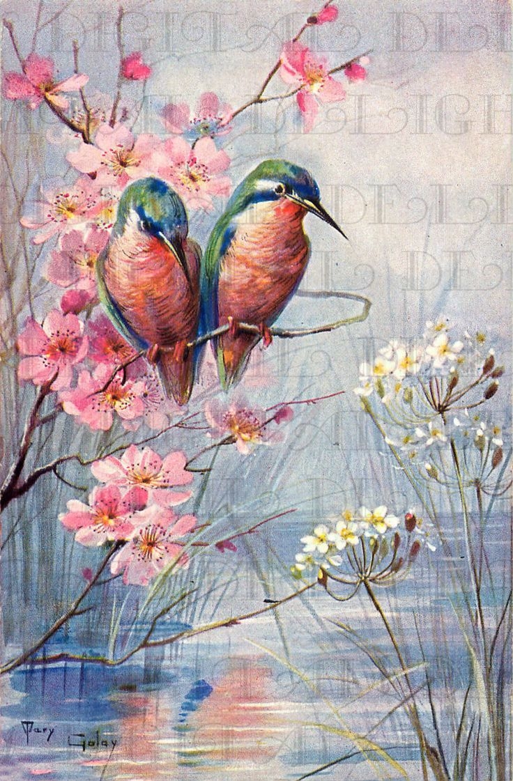 Stunning Humming BIRDS On Spring Dogwood Branch Vintage Bird Illustration Digital Bird DOWNLOAD Printable Bird Image Etsy