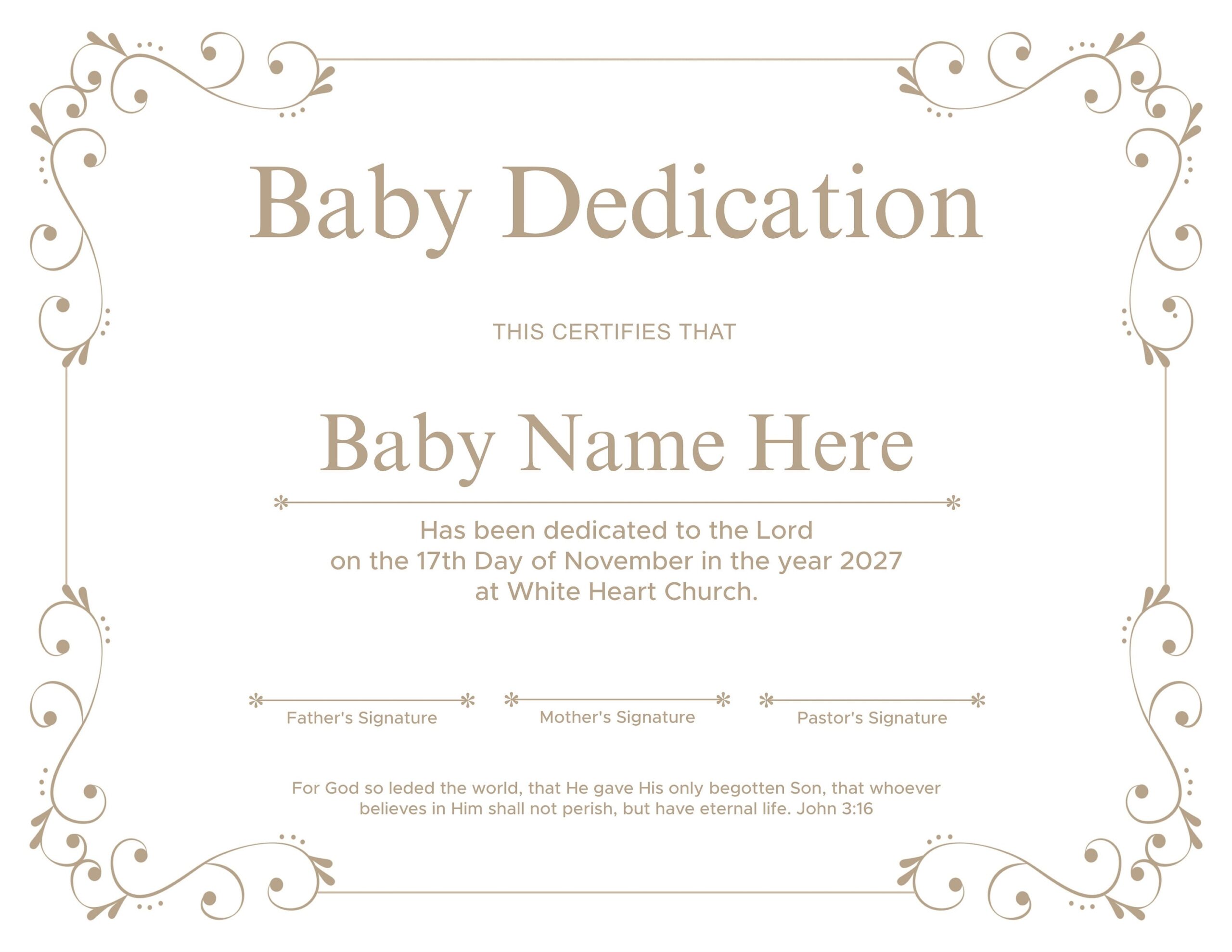 These certificates are not only great for your own baby’s dedication but also make thoughtful gifts for other parents celebrating this joyous occasion. You can easily personalize them for friends or family members, adding a thoughtful touch to their special day.