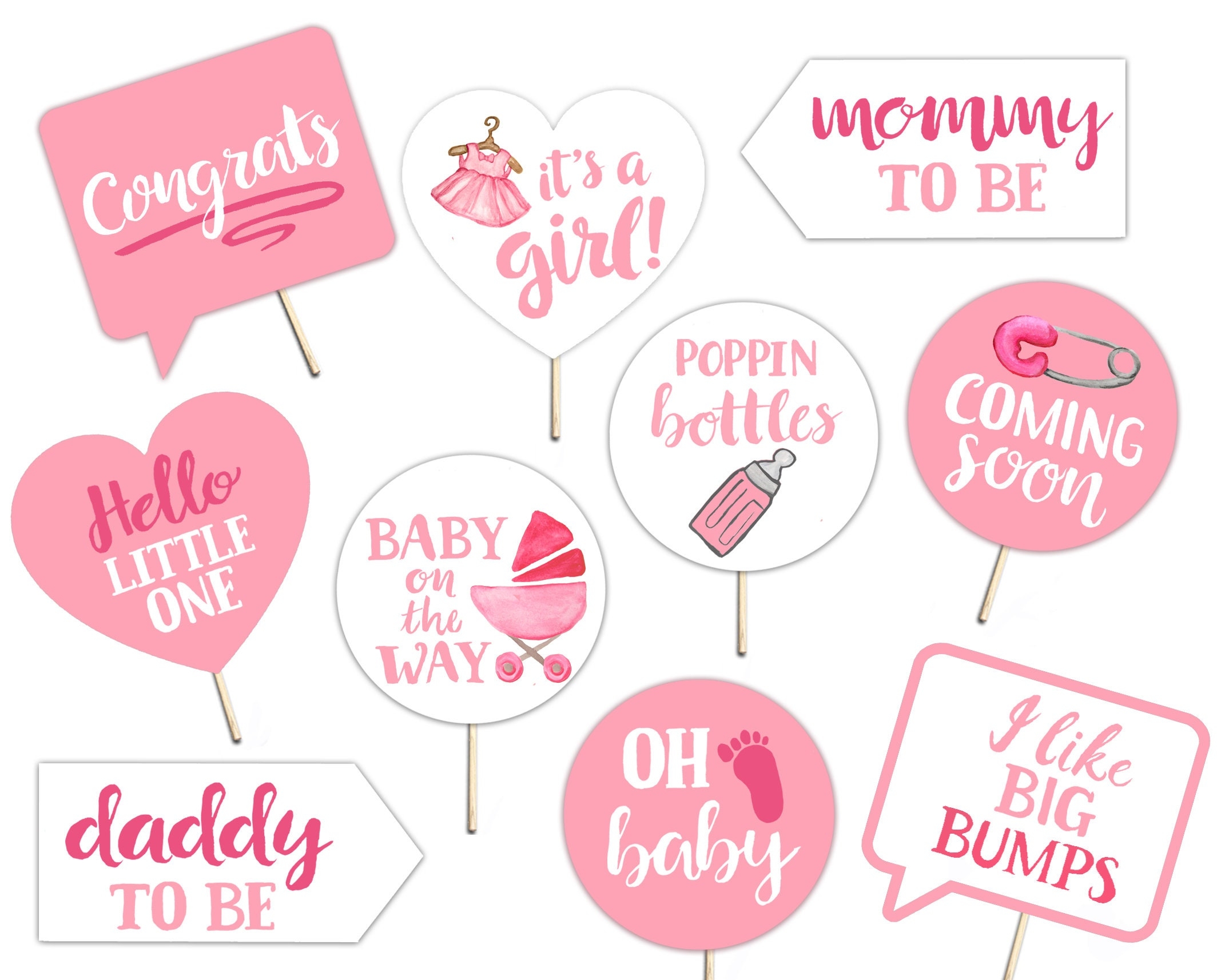 Baby Shower Printable Photo Booth Props Baby Girl Pink And White 10 Hand Painted Signs Pretty Sweet Cute Etsy