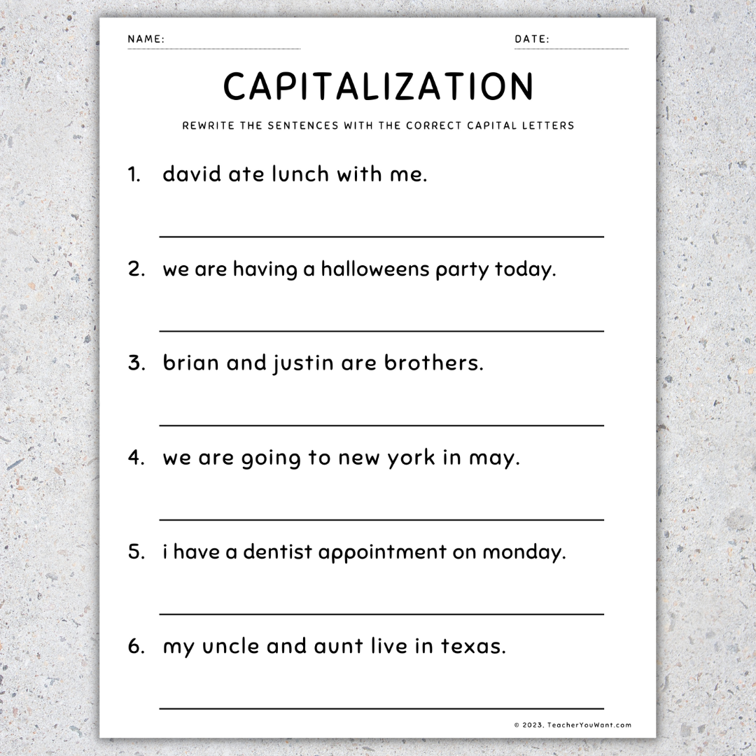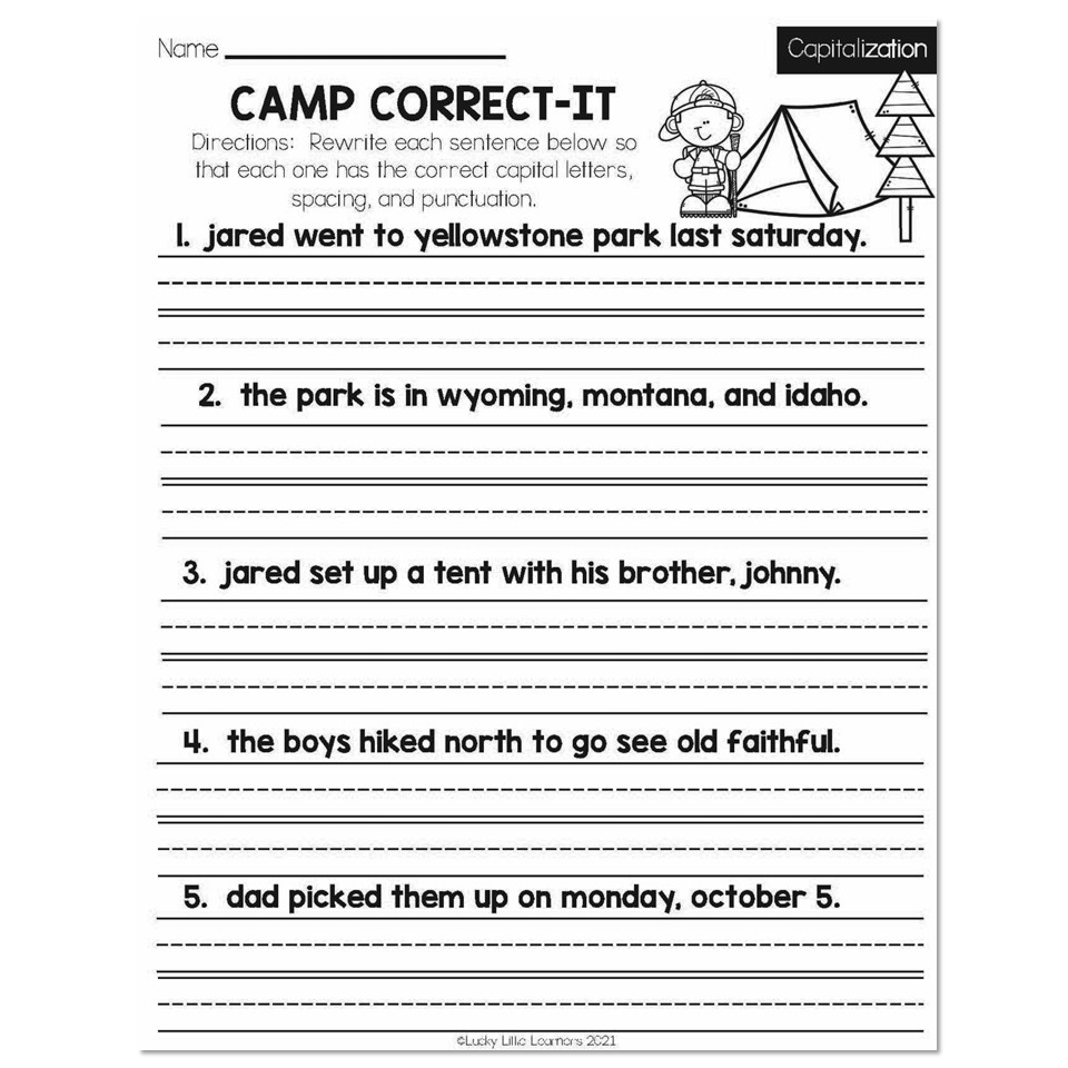 Capitalization Worksheets Fix The Sentences Grammar Practice 2nd Grade Made By Teachers
