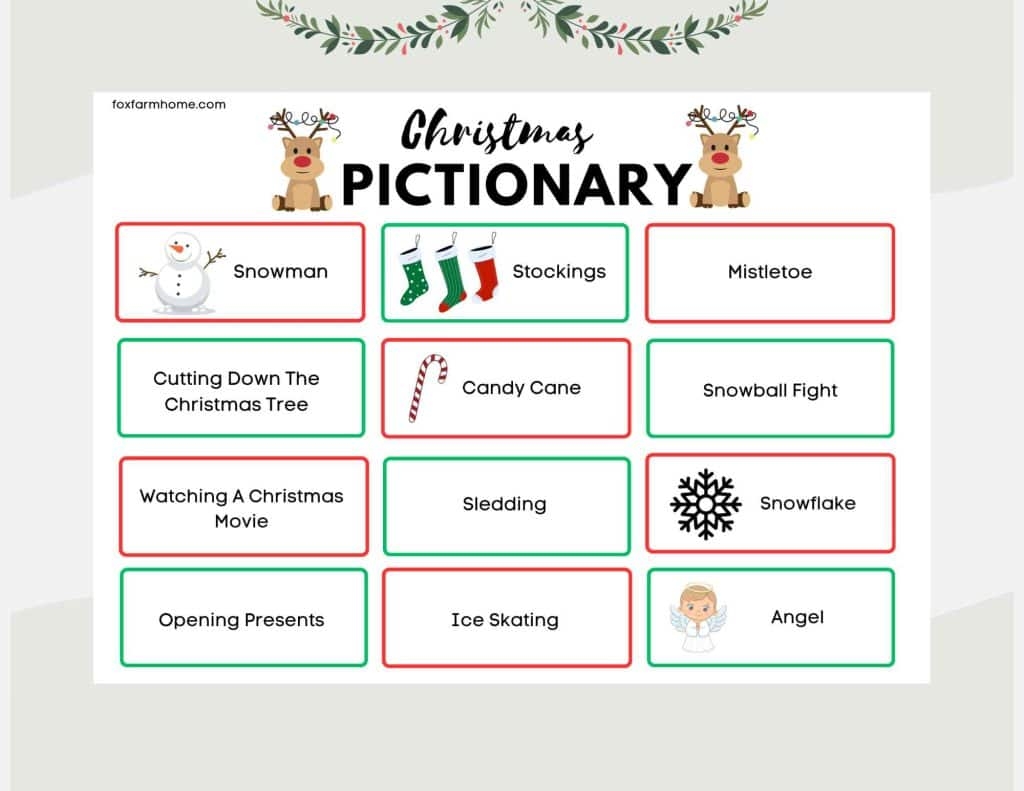 Christmas Pictionary Game For Families Free Printable Fox Farm Home