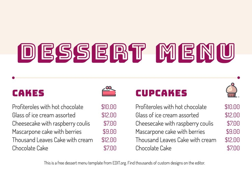 Dessert Menu Templates To Edit Online