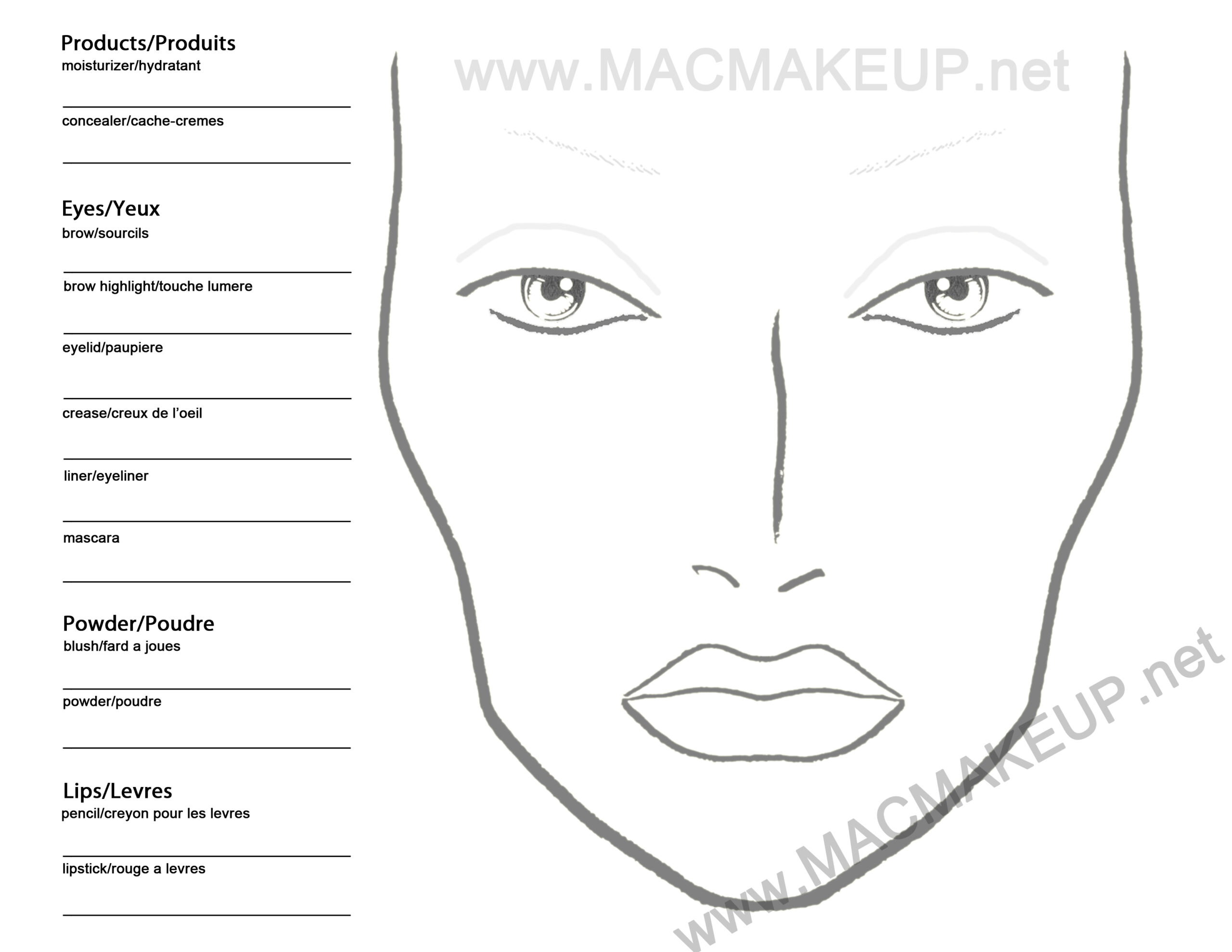 Mac Makeup Face Charts Blank