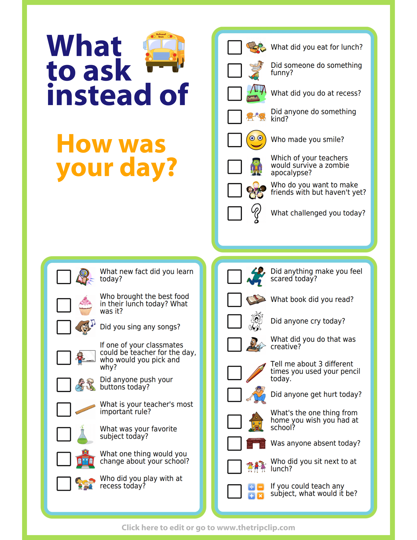 Week 34 Free Printable Instead Of How Was Your Day The Trip Clip Blog