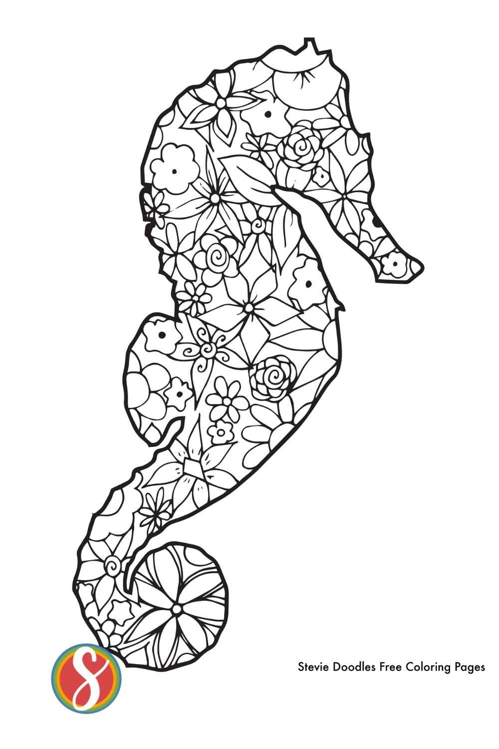 Free Seahorse Printable Coloring Page Stevie Doodles