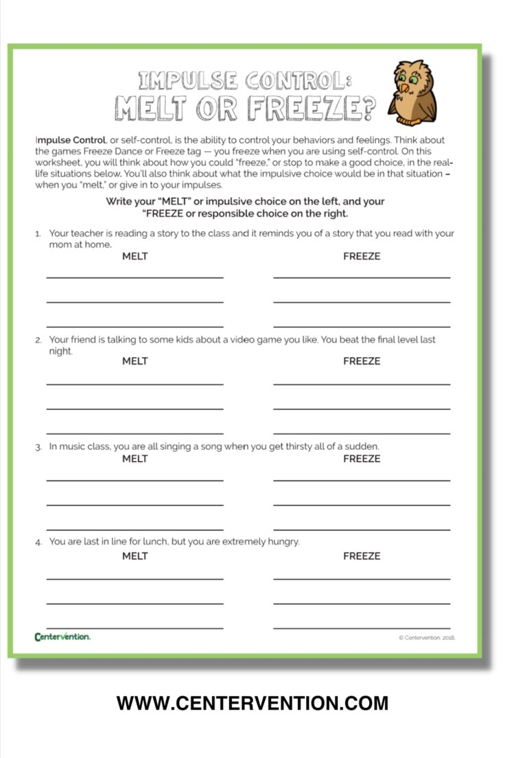 Self Control Worksheets Self Control Activities Self Regulation Activities Worksheets Library