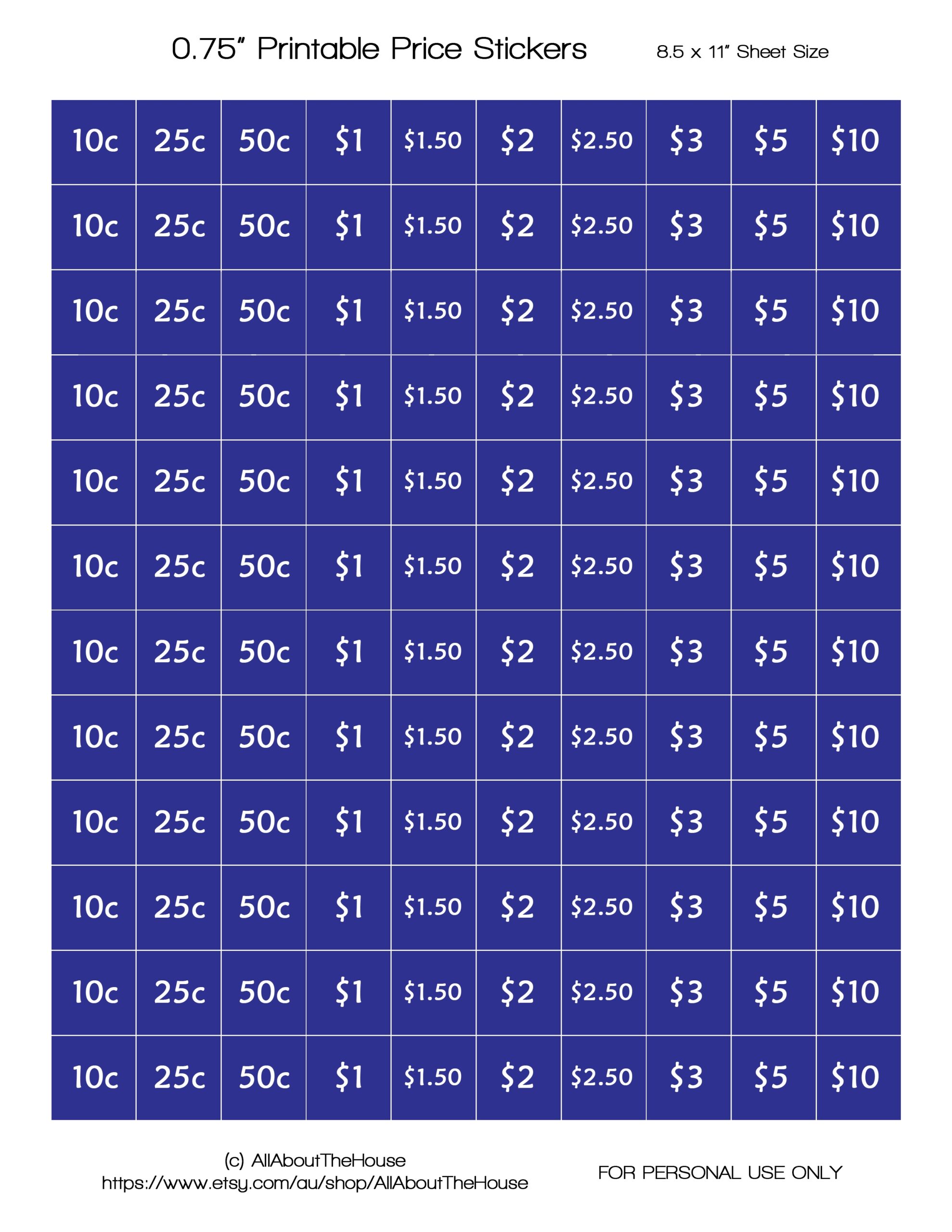 40 Sales Event Yard Sale Price 1 Stickers Labels Blue Digital Download Printable 8 5x11 Collage Sheet INSTANT DOWNLOAD Etsy