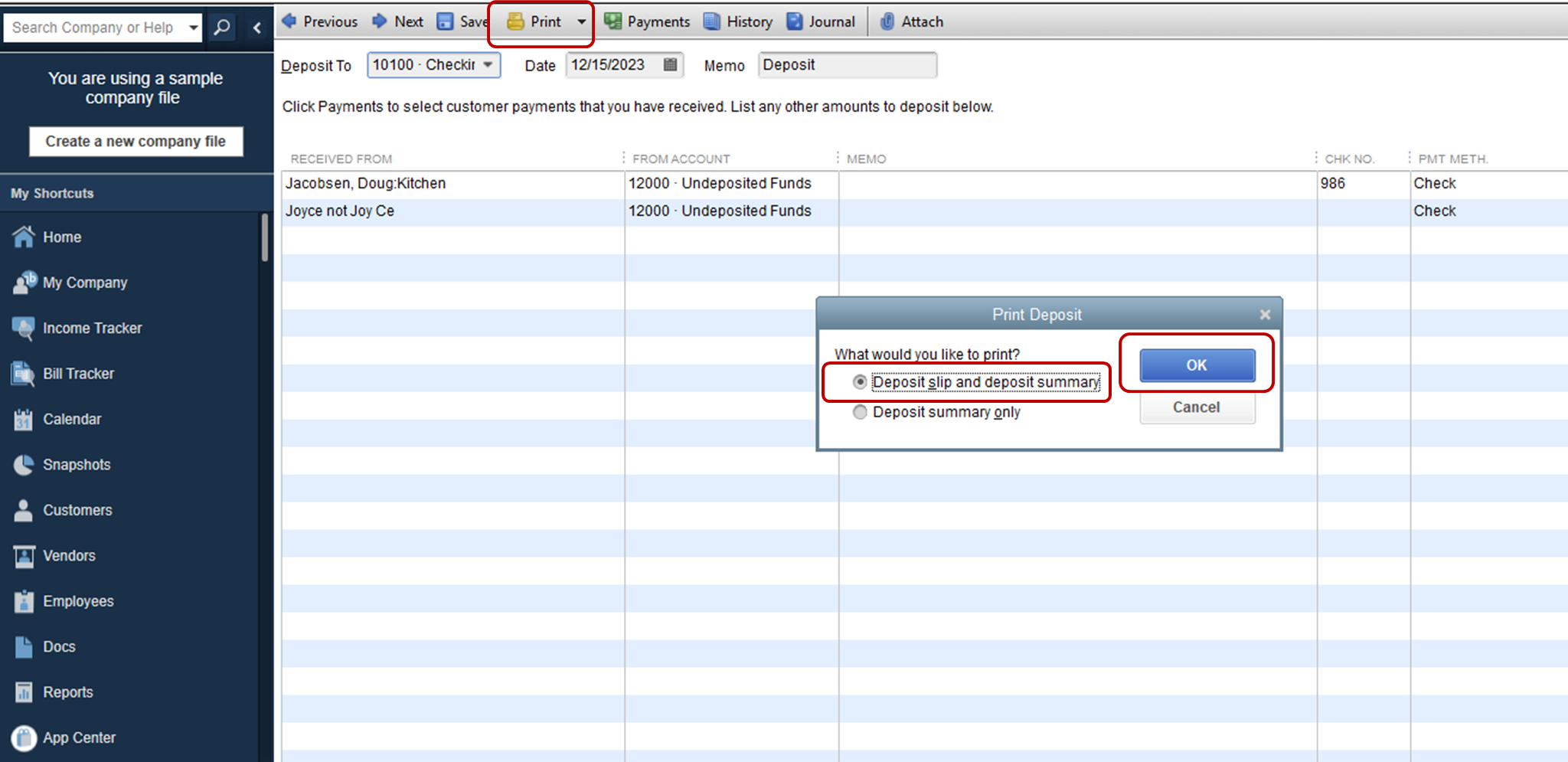 Printing Deposit Slips