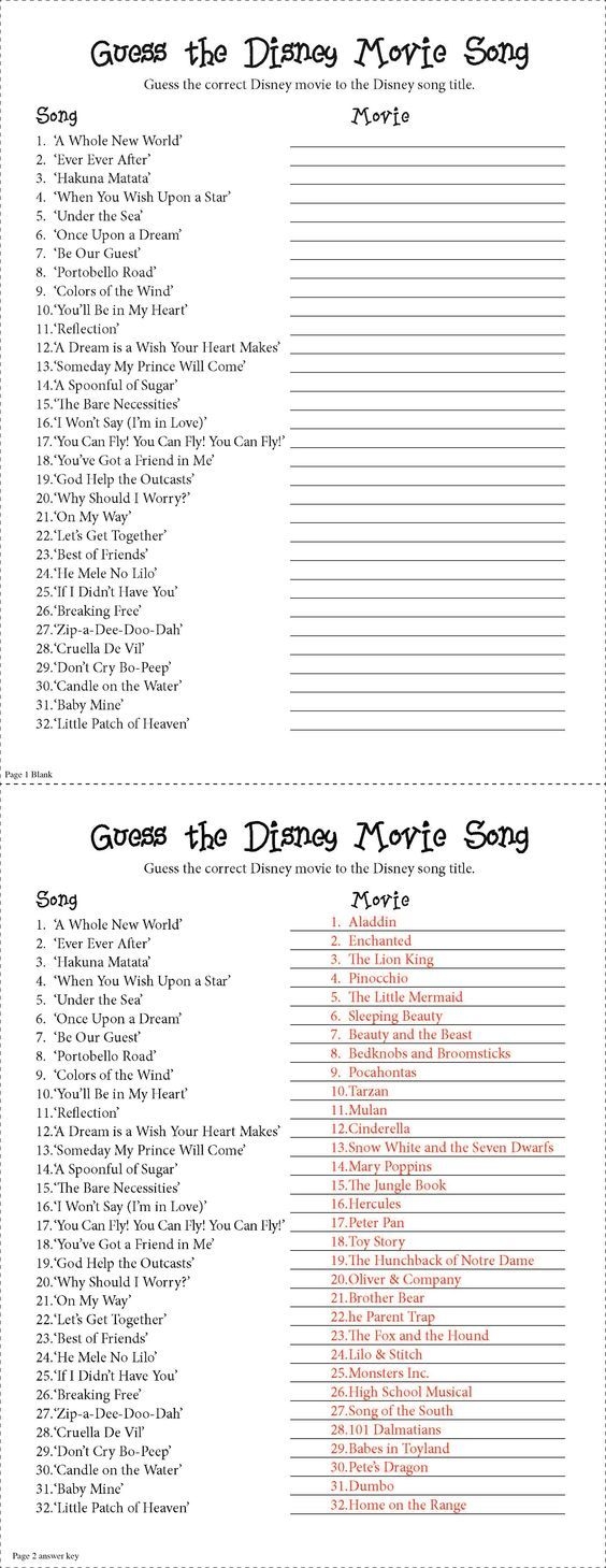 Whether you’re a Disney music expert or just a casual fan, the Guess The Disney Movie Song Printable is a great way to have some musical fun. So gather your loved ones, put on your thinking caps, and get ready to sing along to some of the most beloved songs in Disney movie history.