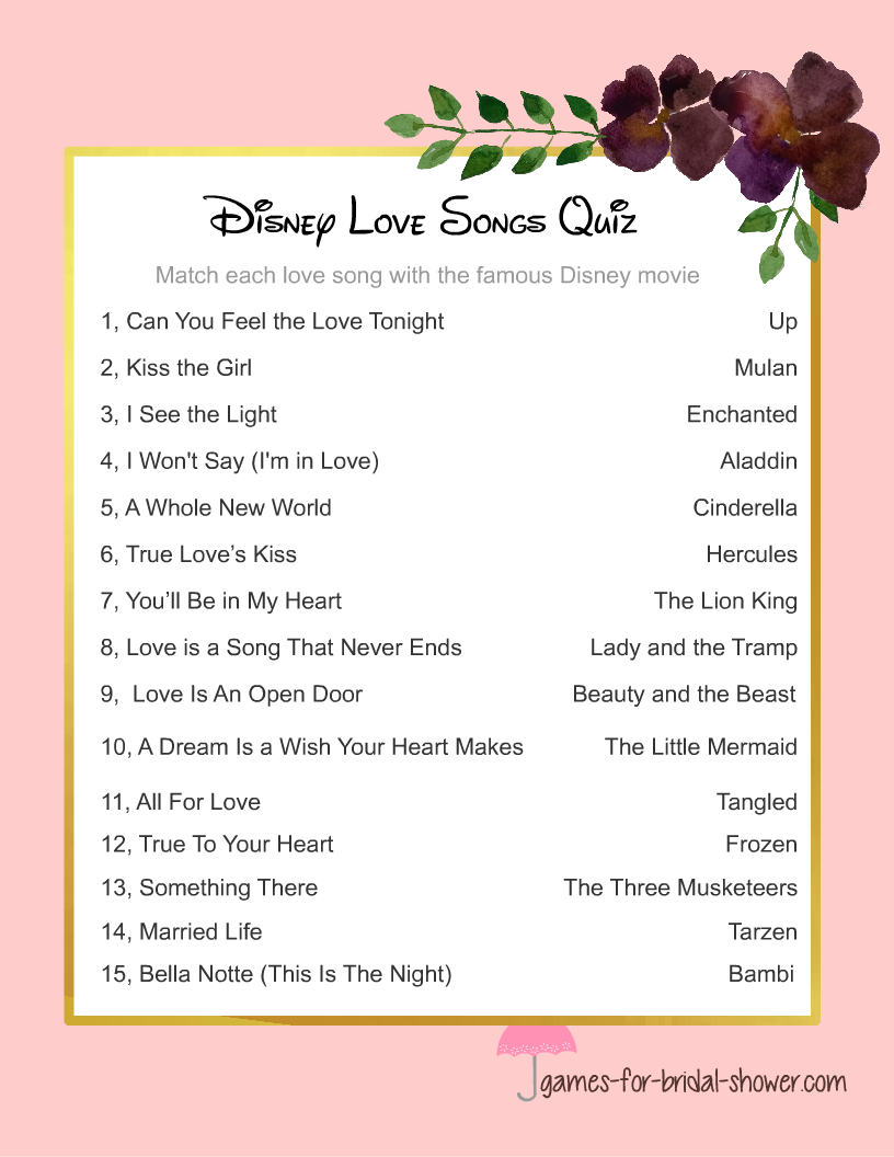This fun activity will test your knowledge of Disney movie songs and have you humming along in no time. Whether you’re a die-hard Disney fan or just looking for a fun activity to do with friends and family, this printable is sure to bring a smile to your face.