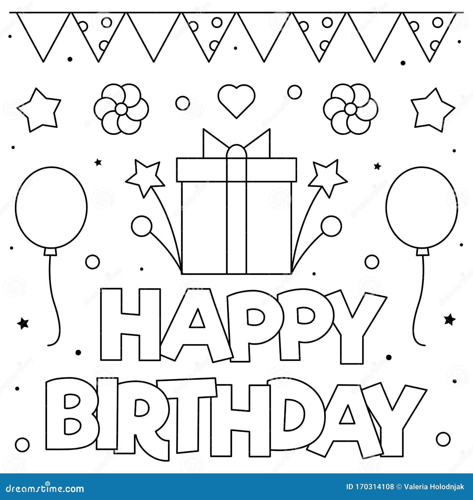 Happy Birthday Coloring Page Black And White Vector Illustration Stock Vector Illustration Of Smiling Line 170314108