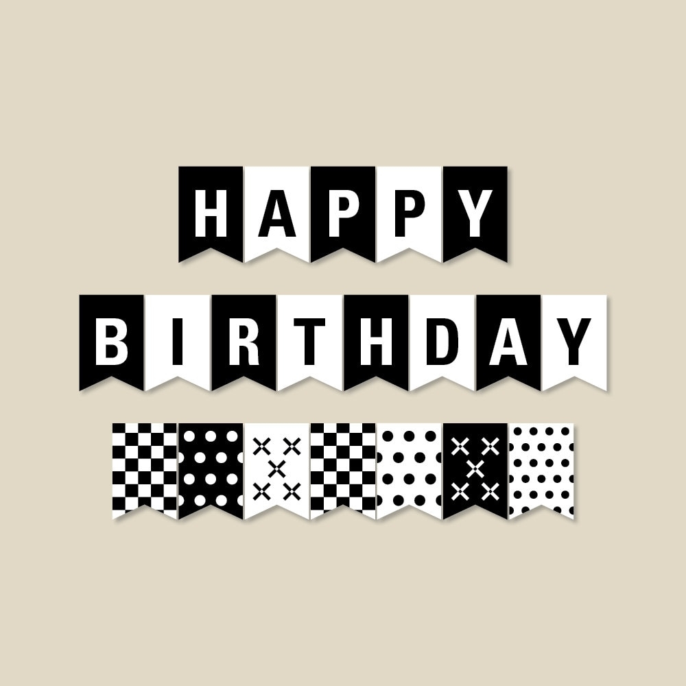 Free Printable Happy Birthday Banner In Black And White