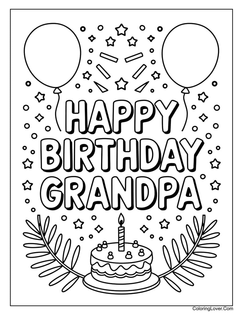 Happy Birthday Grandpa Printable Coloring Page For Kids Handmade Diy Birthday Card Gift For Grandpa From Grandkids Grandson Granddaughter Etsy