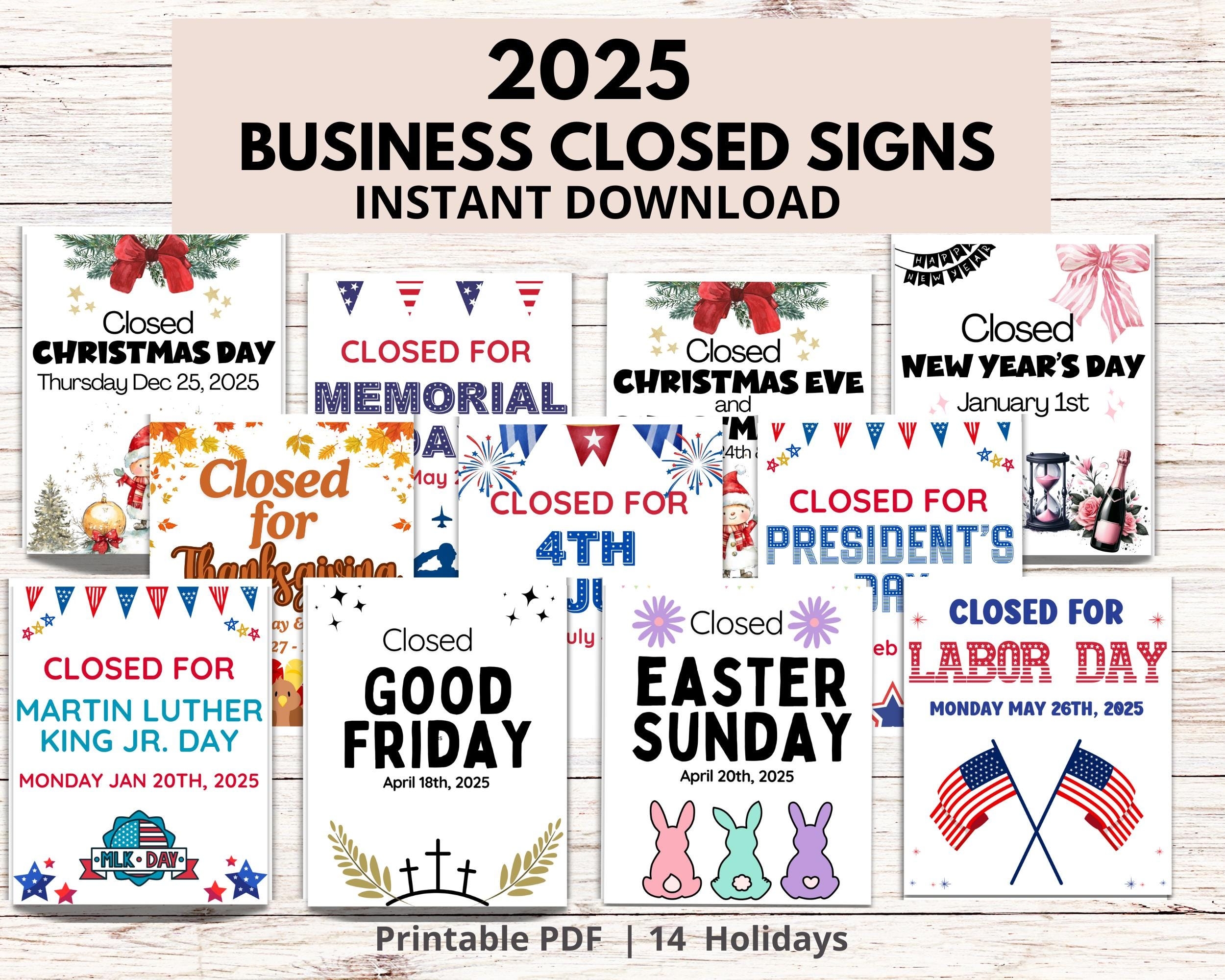 2025 Holiday Closed Sign Bundle Major Holidays Closed Signs Retail Signs Banks Daycare Signs Libraries Medical Offices Business Signs Etsy