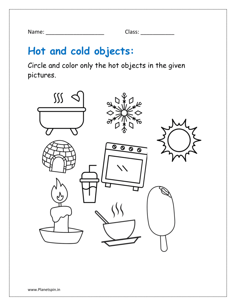 Hot And Cold Objects Worksheets For Kindergarten Planetspin in
