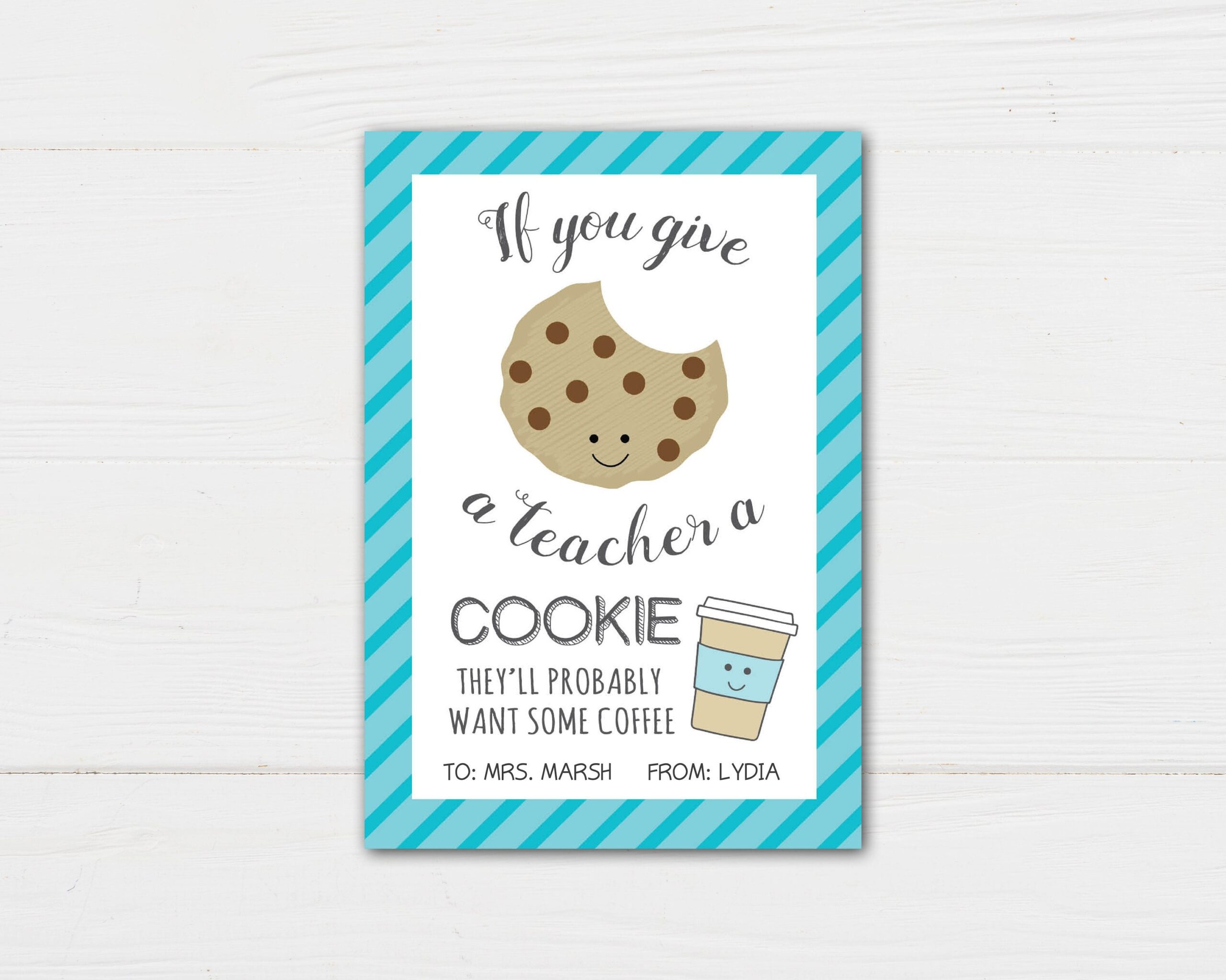 If You Give A Teacher A Cookie Printable Gift Tag Cookie And Coffee Gift Easy DIY Teacher Appreciation Gift Idea INSTANT DOWNLOAD Etsy
