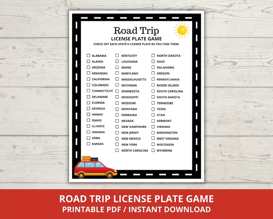 Road Trip License Plate Game License Plate Scavenger Hunt Printable License Plate Game Road Trip Game Car Games License Plate Hunt Etsy