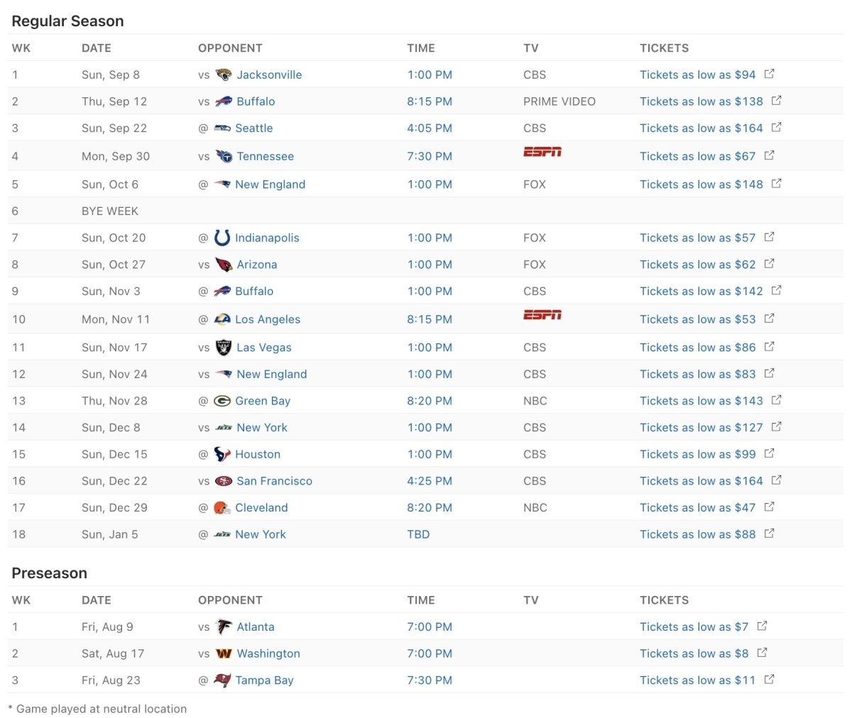 Make sure to circle the can’t-miss games on the schedule, like the matchups against the New England Patriots and the New York Jets. These division games are always intense and full of excitement, making them must-watch events for any football fan.