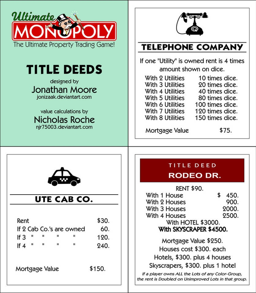 Ultimate Monopoly Title Deeds Printable By Jonizaak On DeviantArt