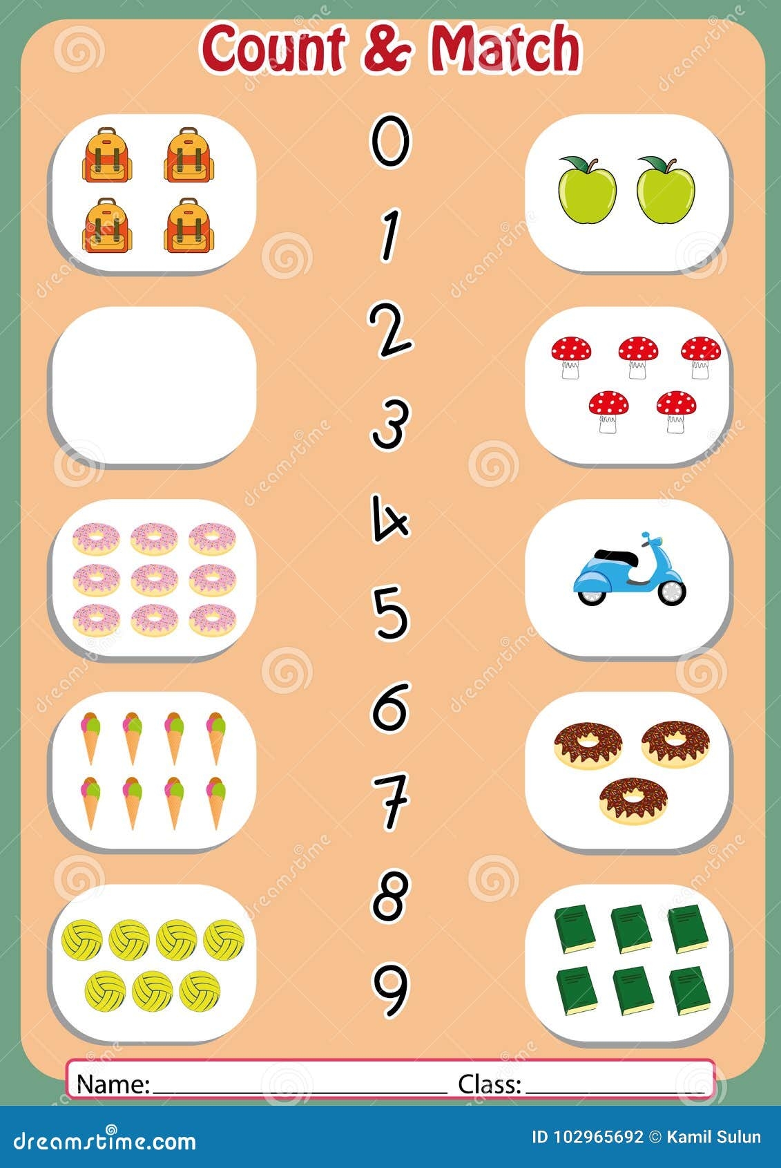 Match The Numbers To The Objects Worksheet For Preschool Stock Vector Illustration Of Notepad Learn 102965692