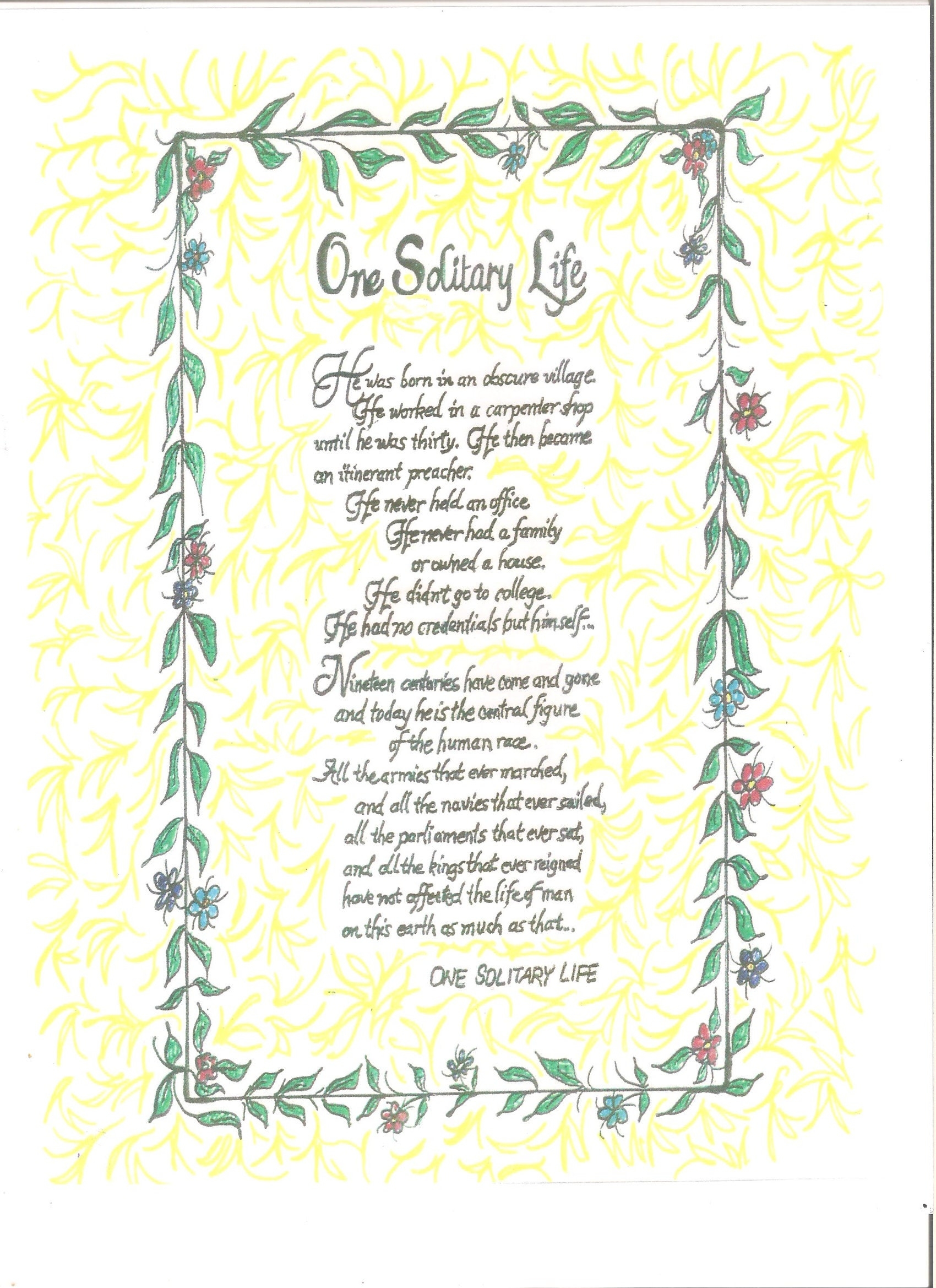 One Solitary Life Poem Etsy