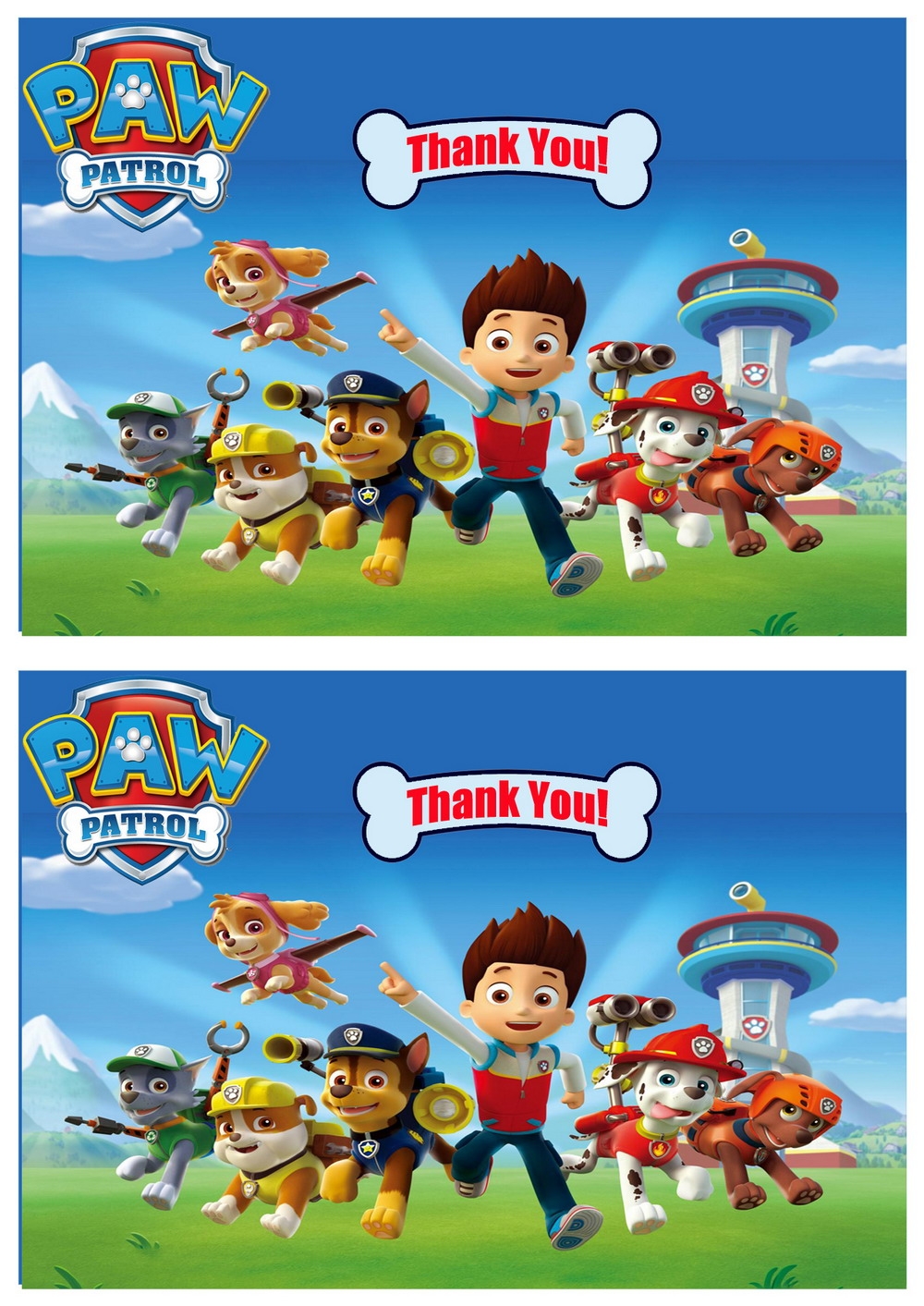 Printable Paw Patrol Thank You Cards: