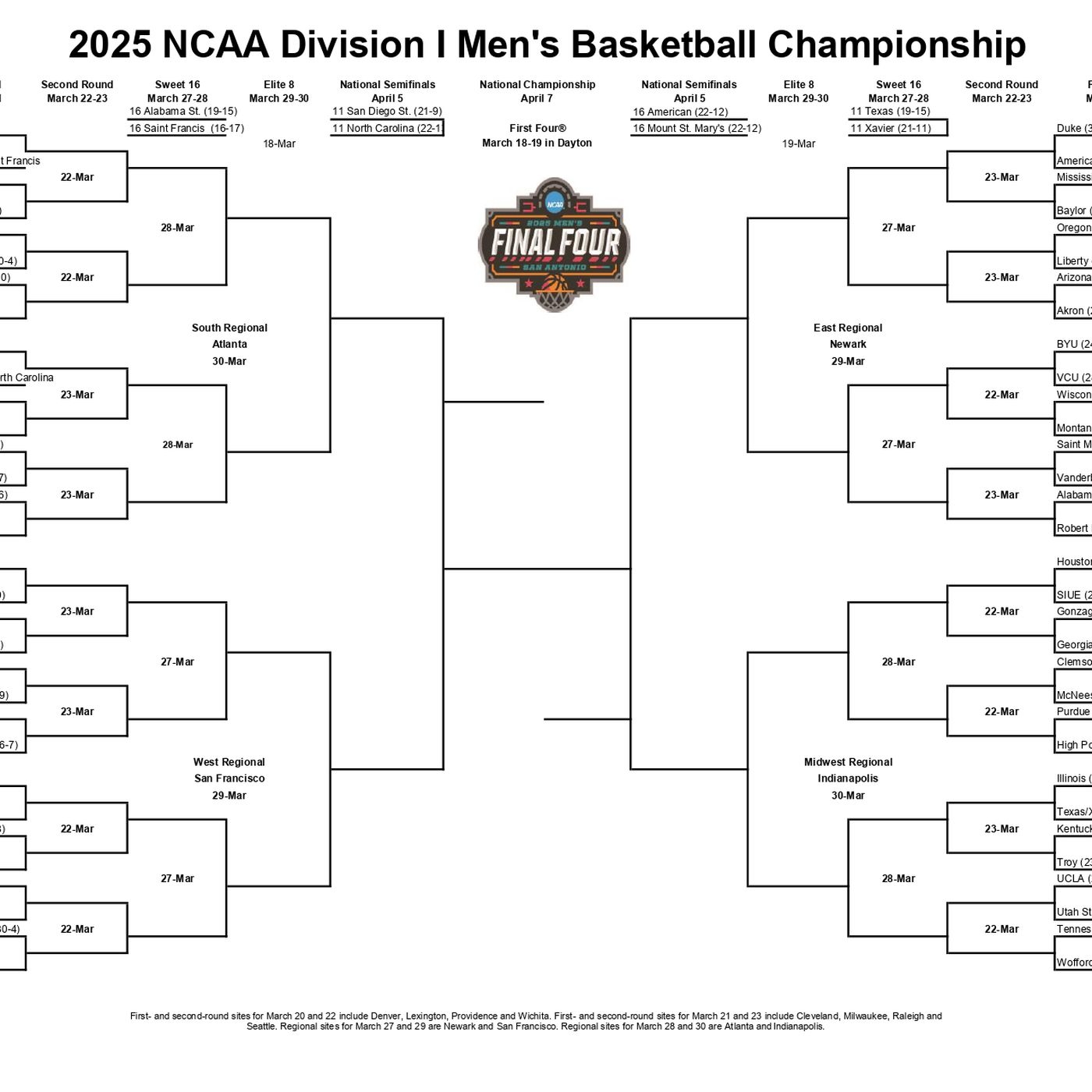 Printable 2025 March Madness Bracket