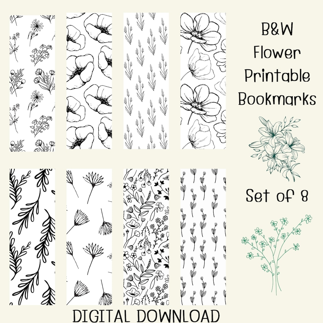 Black White Flower Printable Bookmarks SET OF 8 Black And White Colorable Flower Bookmarks Perfect Gift For Readers Etsy Canada
