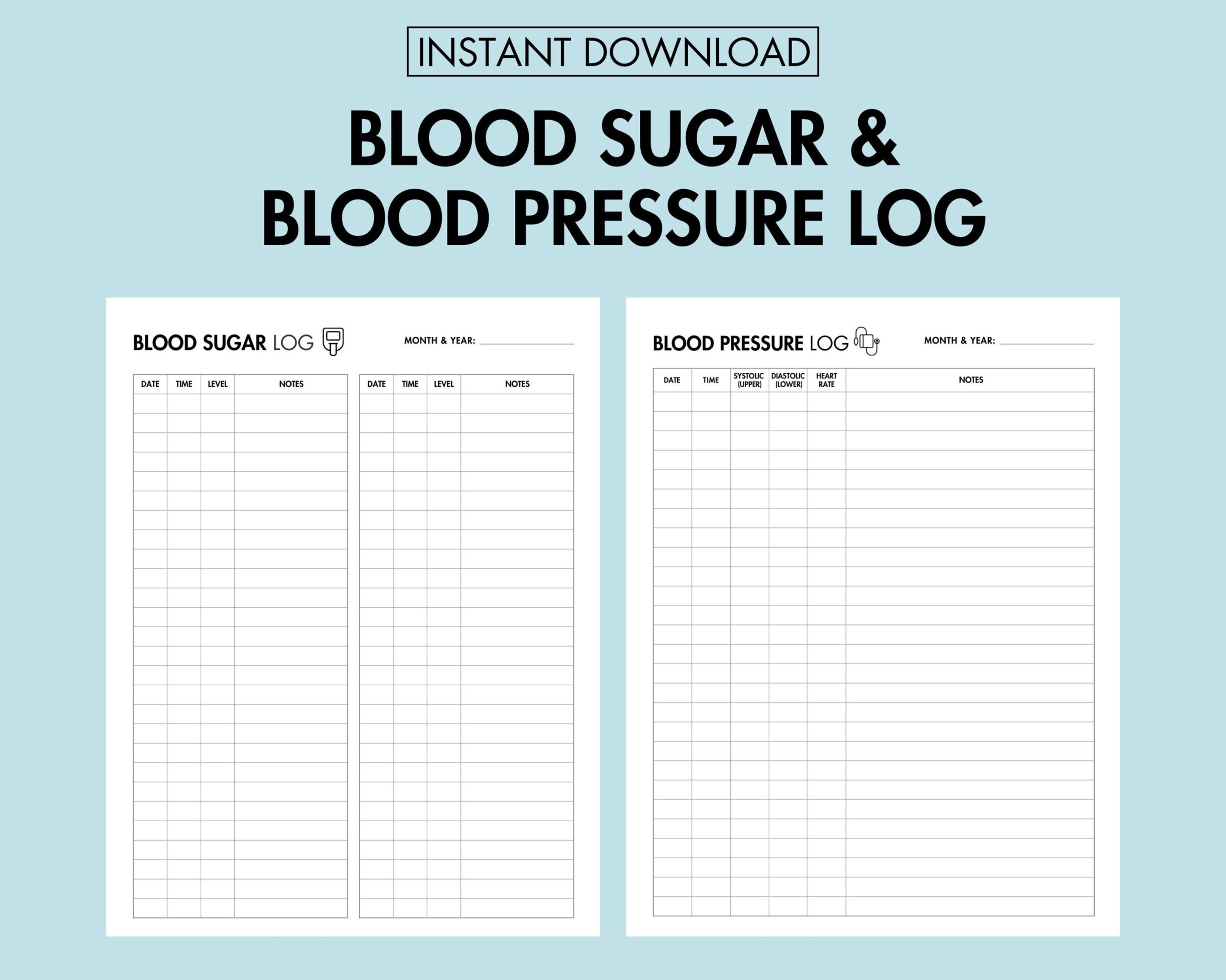 There are many free templates available online that you can download and print at home. These log sheets typically include spaces to record your blood pressure readings, blood sugar levels, date and time of measurement, as well as any notes you may want to add.