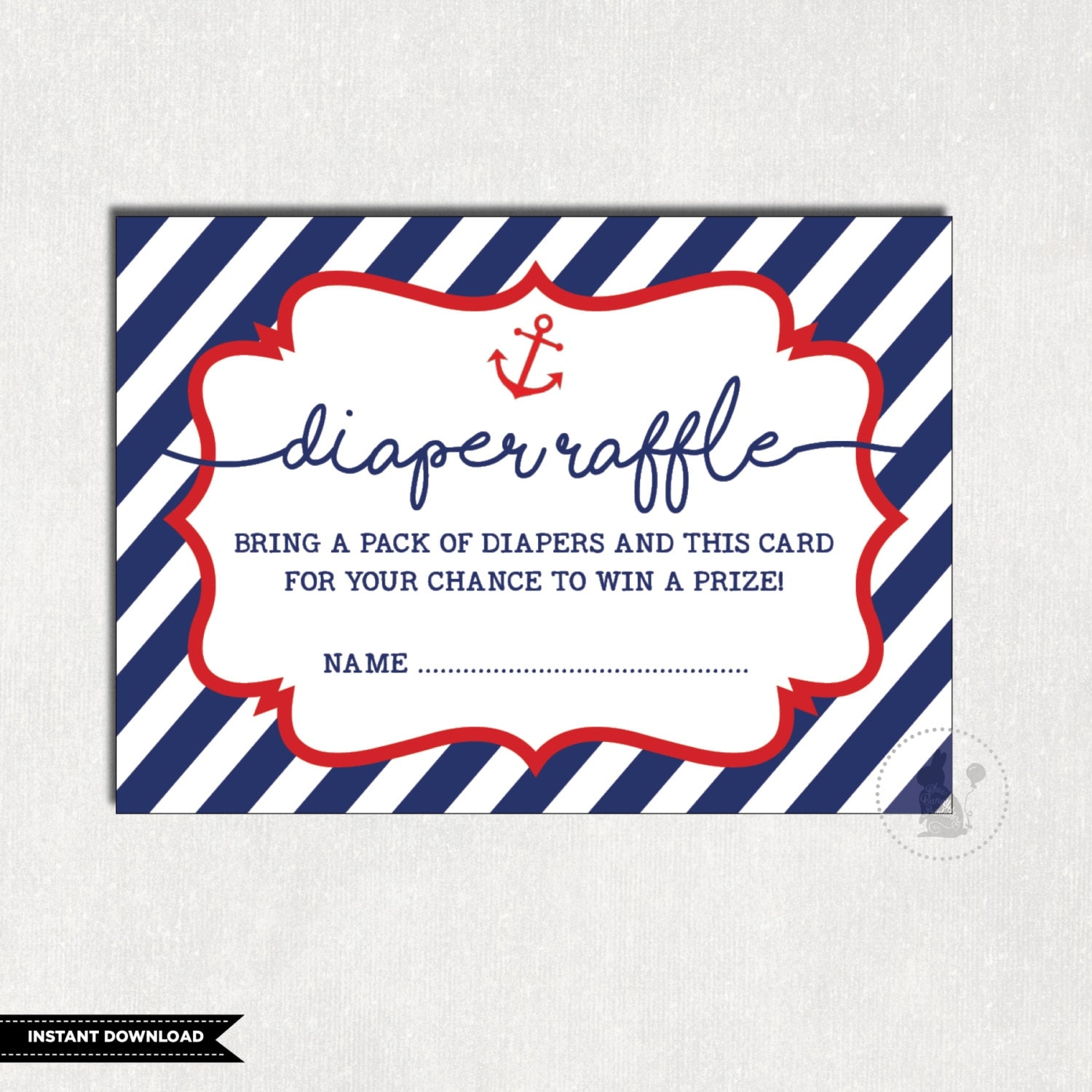 NAUTICAL DIAPER Raffle Printable Anchor Baby Shower Nautical Baby Raffle Ticket Navy Stripes Insert Card Ahoy Baby Boy NAU1 Etsy