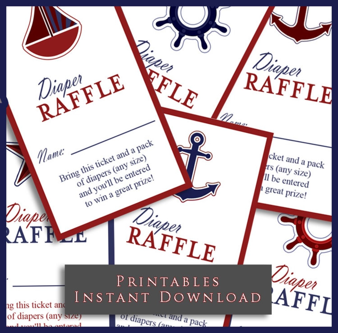 Nautical Theme Diaper Raffle Tickets INSTANT DOWNLOAD Red And Blue Printable Raffle Tickets Baby Shower Insert Card DIY Etsy